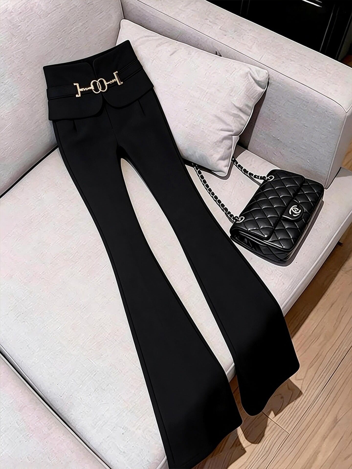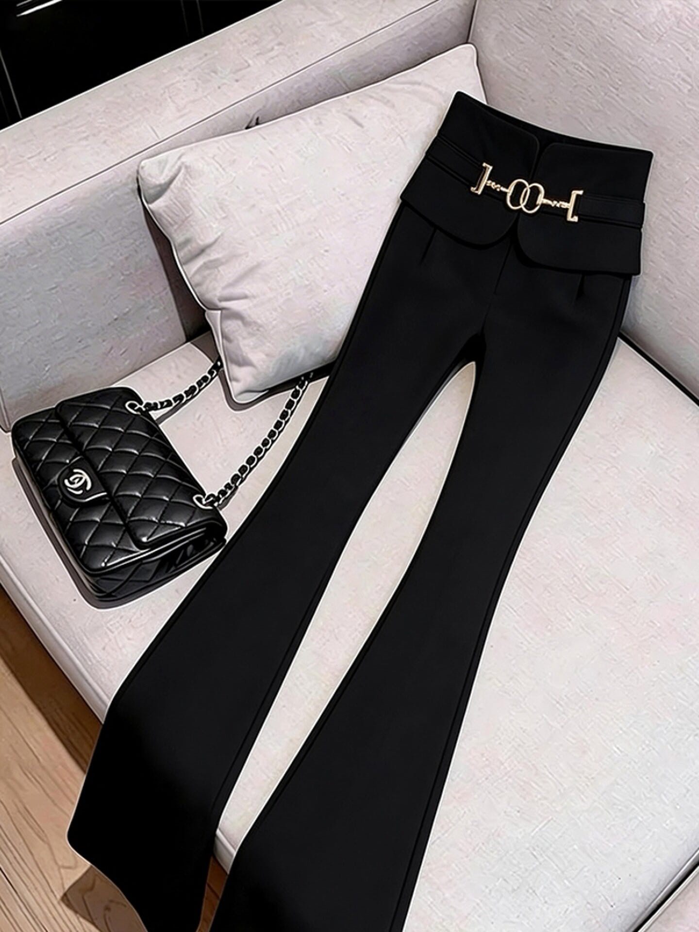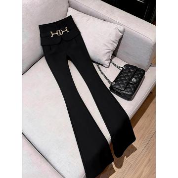 BY14750# 时尚气质高级感巨好看黑色微喇裤夏季新款高腰显瘦百搭长裤子 服裝批發女裝批發服飾貨源