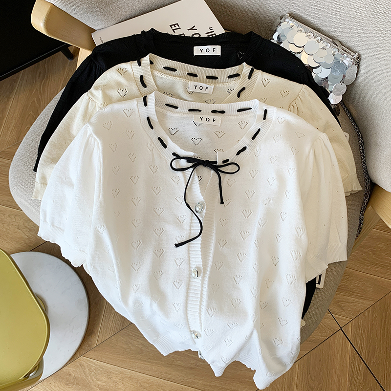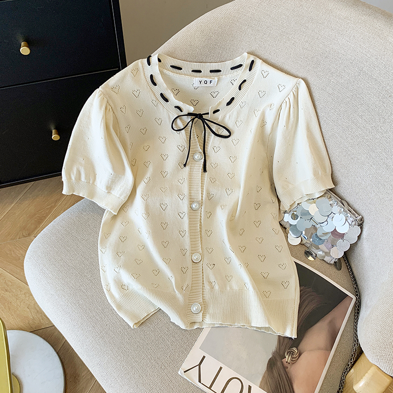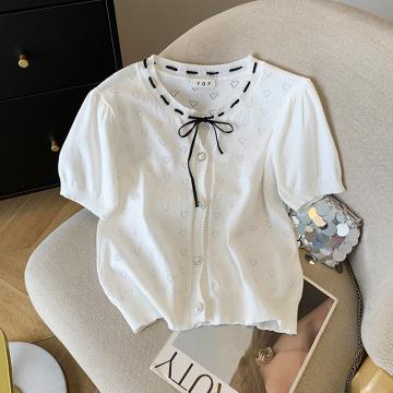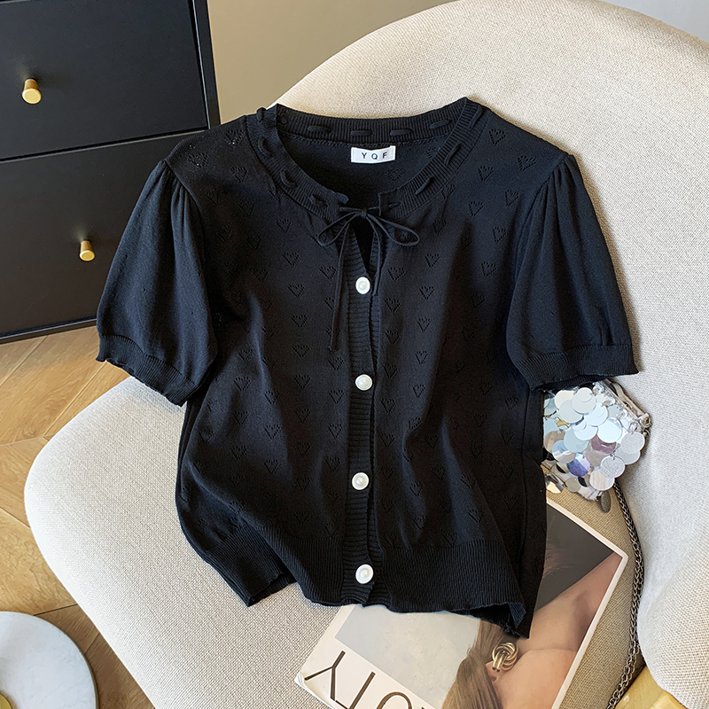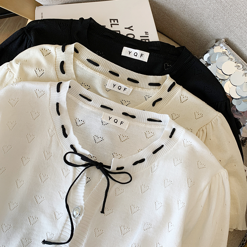 BY14995# 夏季新款ins设计感蝴蝶结镂空冰丝针织衫T恤上衣女 服裝批發女裝批發服飾貨源