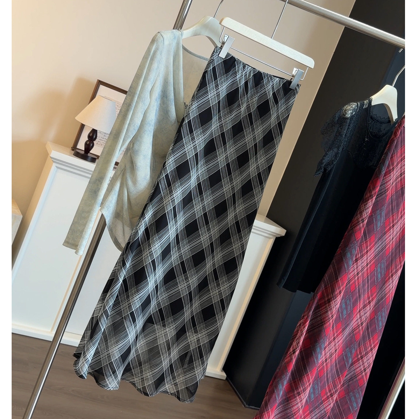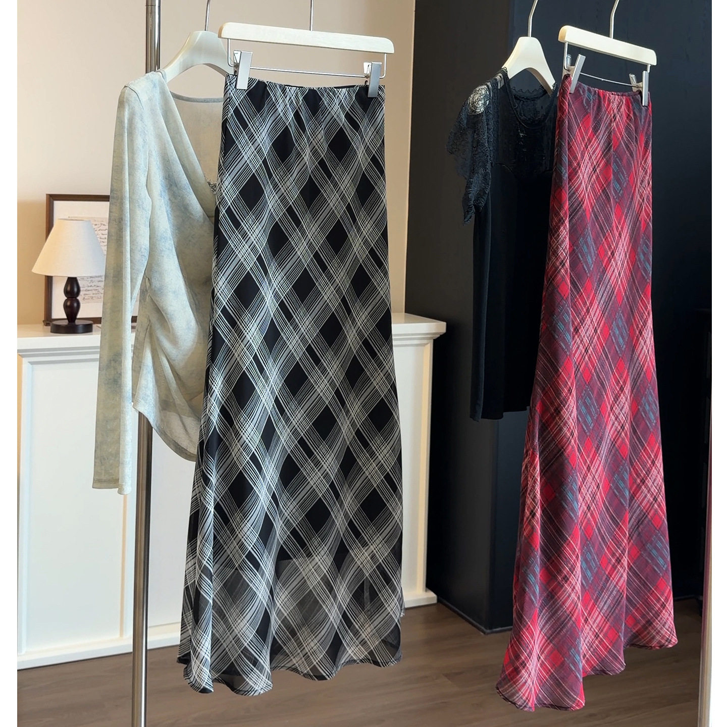 BY15569# 复古格纹半身裙女夏季新款时尚气质薄款高腰显瘦a字鱼尾裙子 服裝批發女裝批發服飾貨源