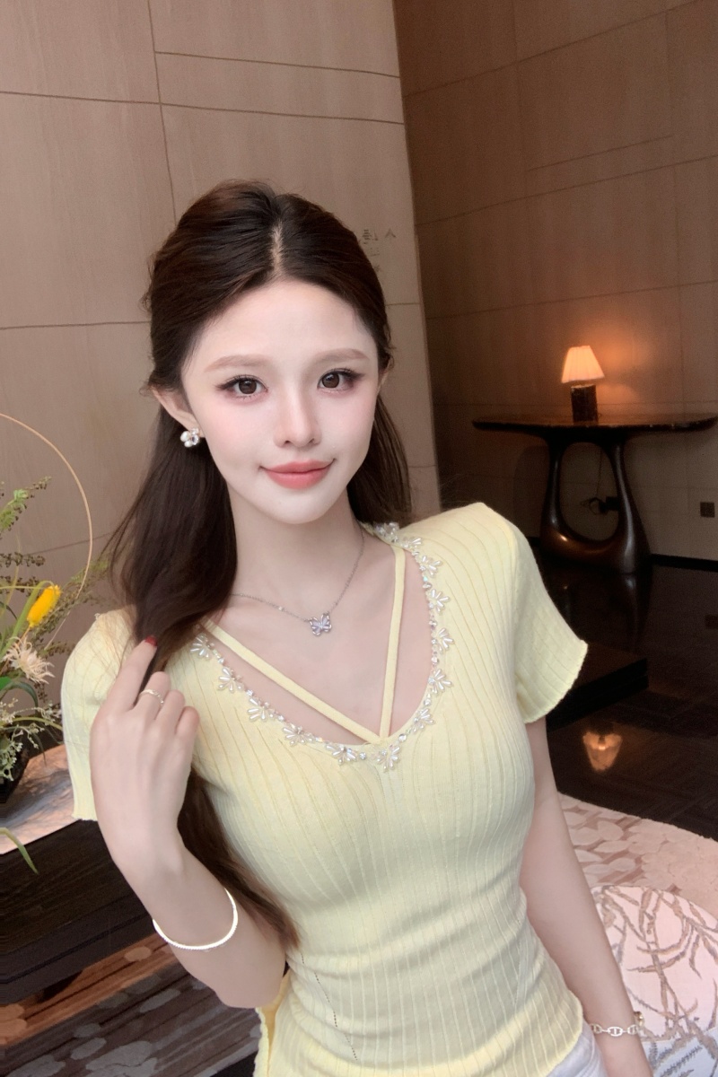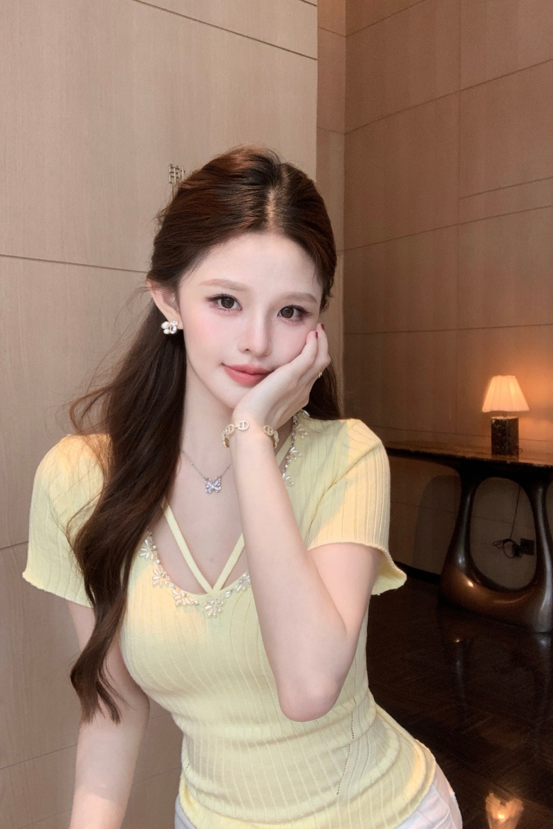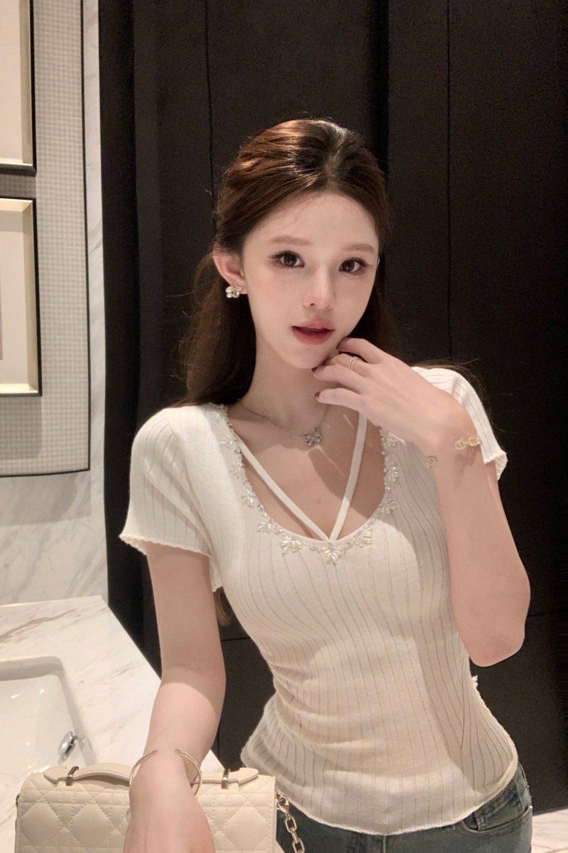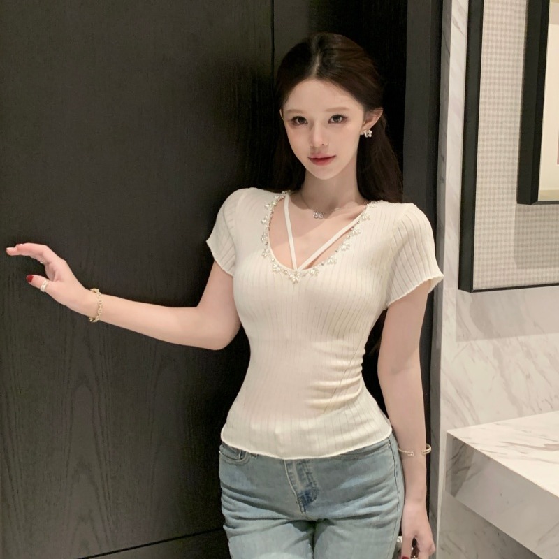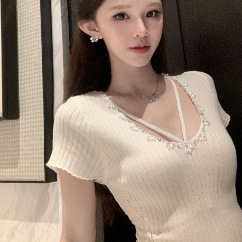 BY15665# 法式夏季纯欲辣妹薄款针织上衣女气质修身显瘦短袖新款 服裝批發女裝批發服飾貨源