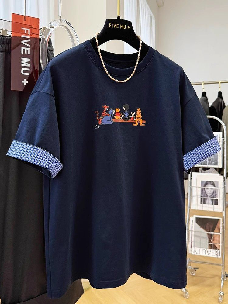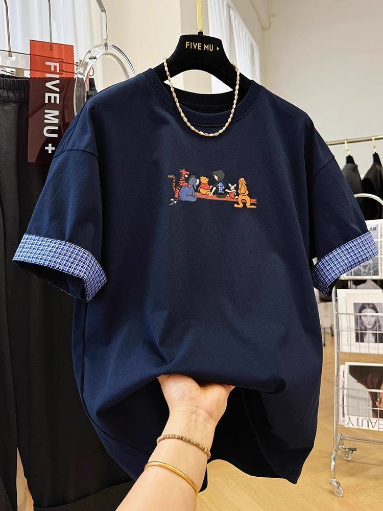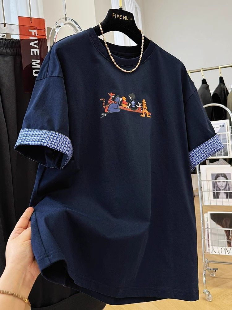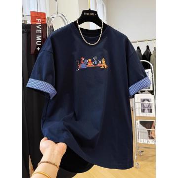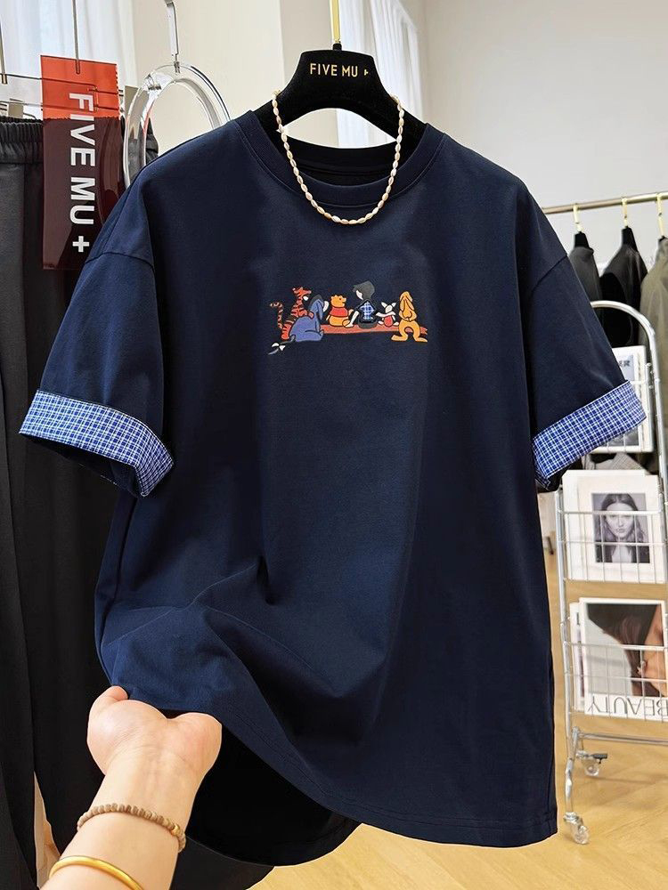 BY16248# 复古高级感卡通印花减龄休闲短袖T恤女夏季欧货洋气宽松百搭上衣 服裝批發女裝批發服飾貨源
