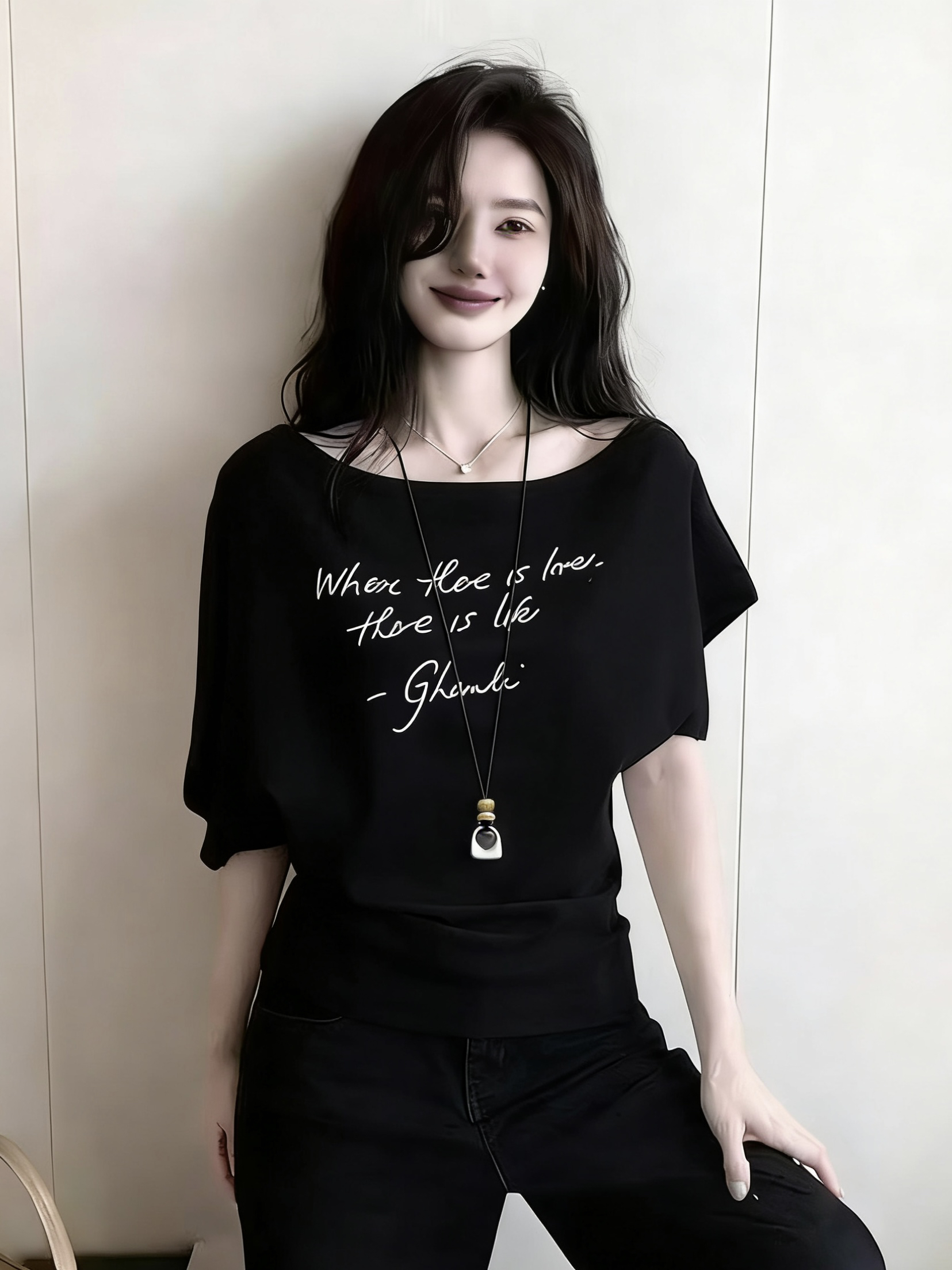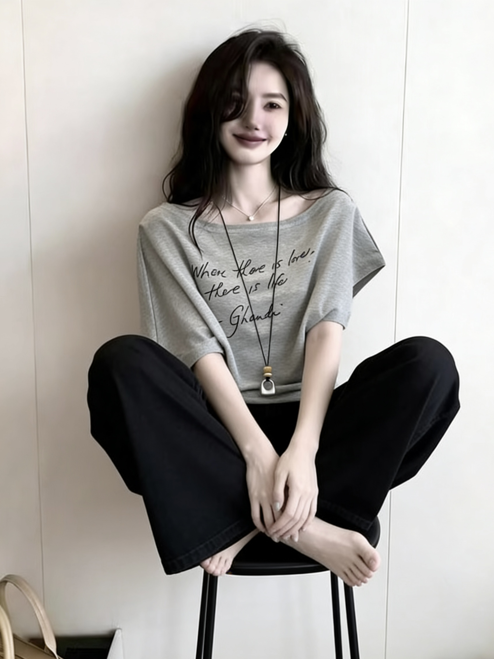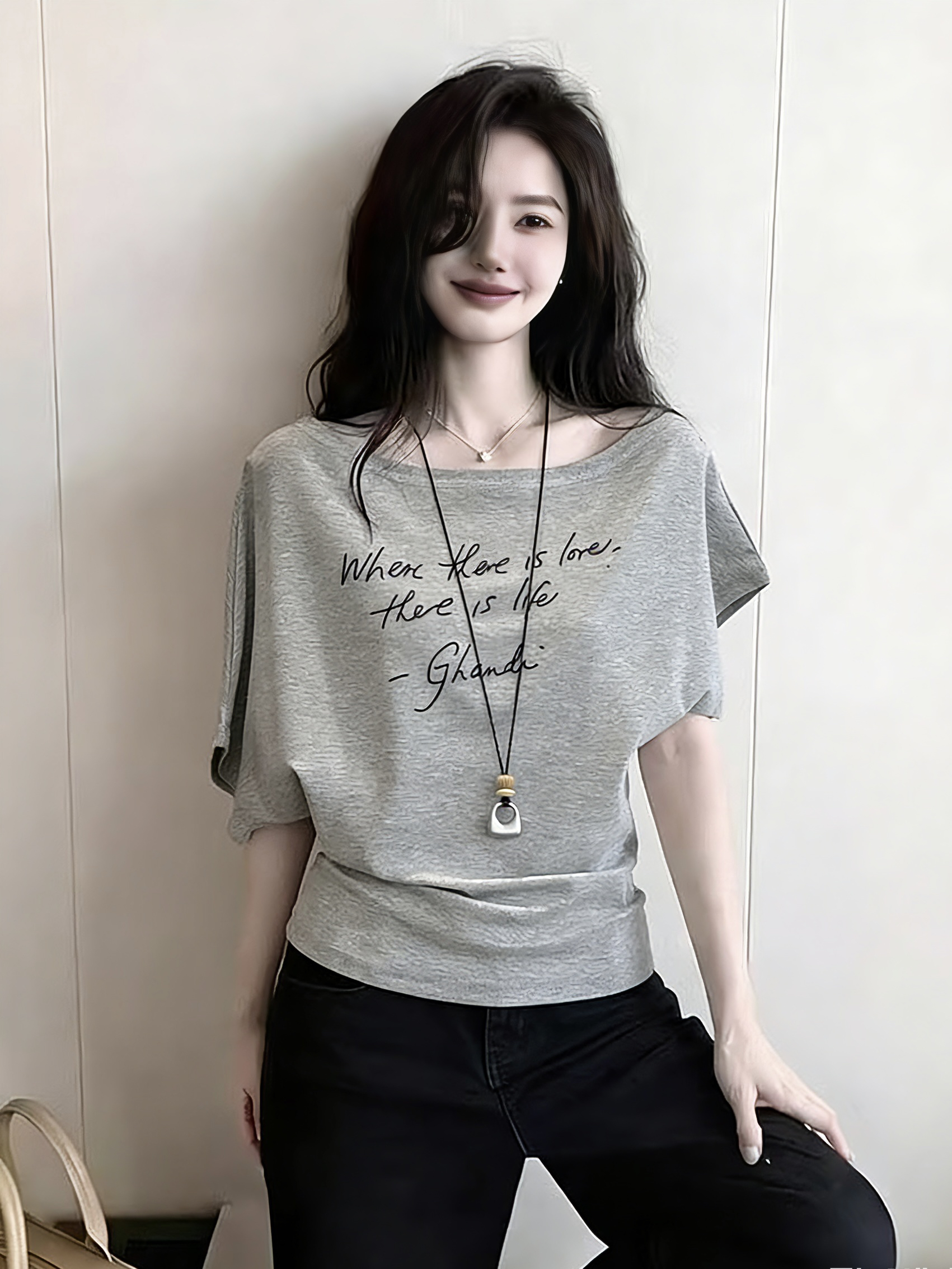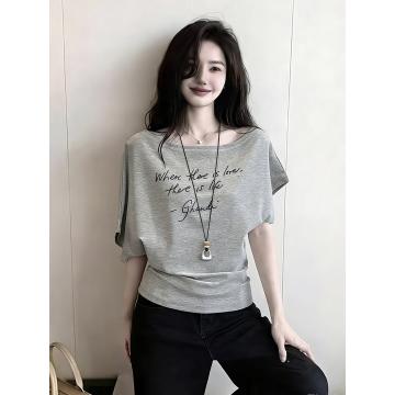 BY16328# 韩系设计感一字肩字母印花短袖t恤女夏季新款收腰不对称上衣 服裝批發女裝批發服飾貨源