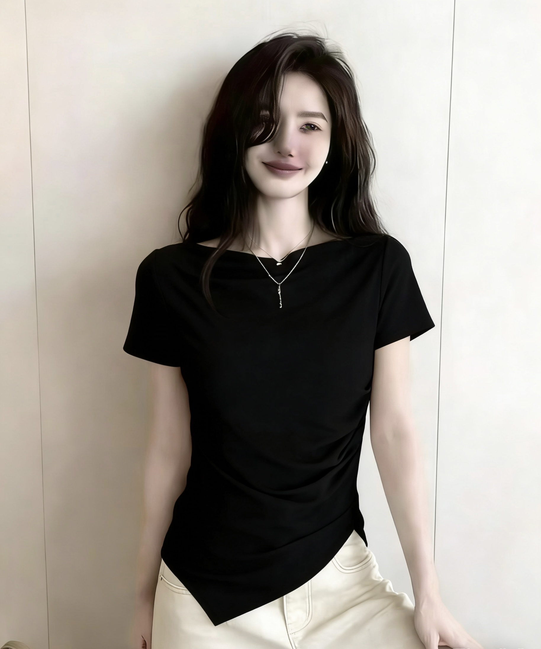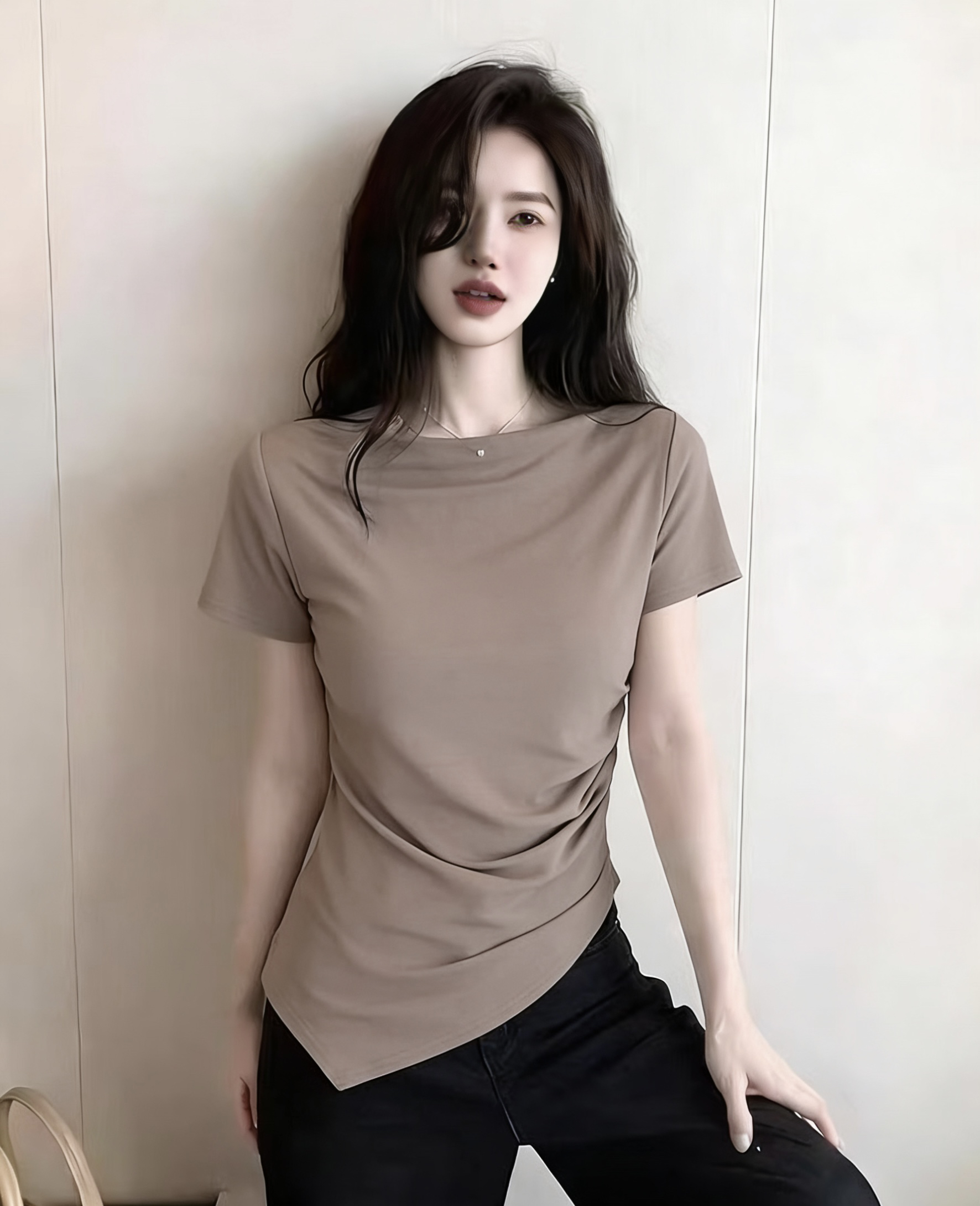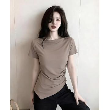 BY16330# ⼀字领短袖女夏季修身显瘦T恤打底衫不规则上衣ins 服裝批發女裝批發服飾貨源