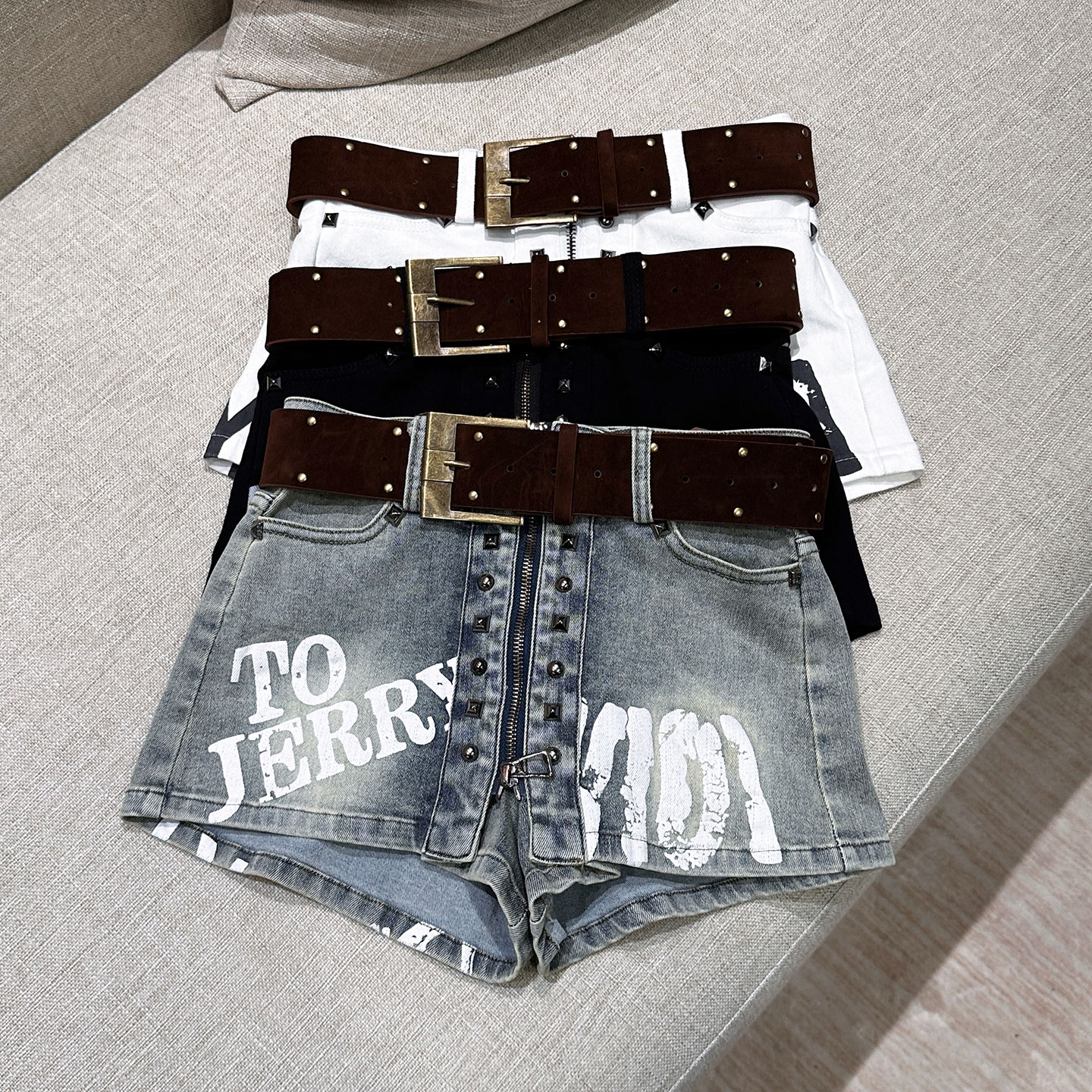 BY17796# 美式纯欲风辣妹重工设计感弹力牛仔半身裙裤裙配送腰带 服裝批發女裝批發服飾貨源