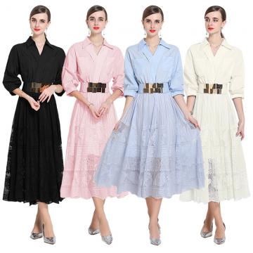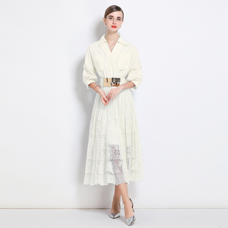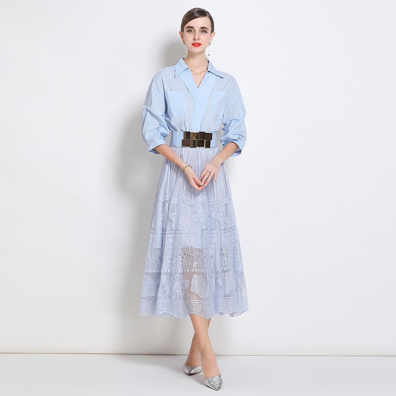 BY17911# 新款小众设计感衬衫连衣裙女御姐通勤减龄收腰蕾丝裙 服裝批發女裝批發服飾貨源