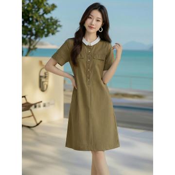BY17956# 通勤穿搭翻领衬衫连衣裙女夏中长款显瘦减龄气质裙 服裝批發女裝批發服飾貨源