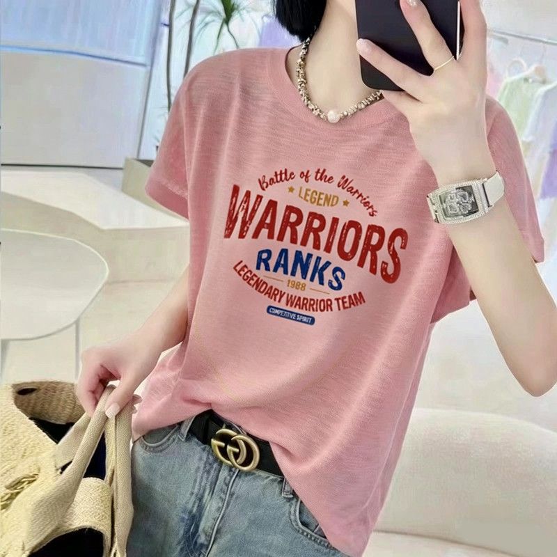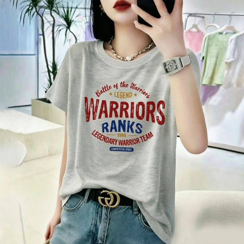 BY18121# 竹节棉夏季新款短袖印花大码宽松百搭休闲圆领上衣T恤 服裝批發女裝批發服飾貨源