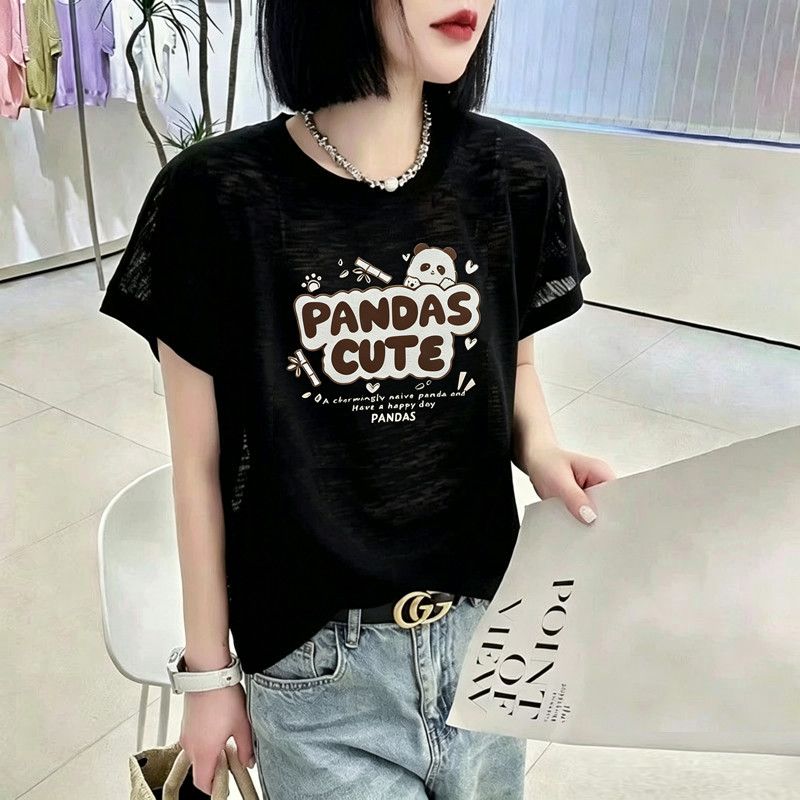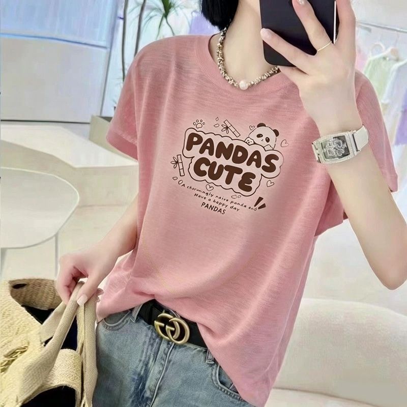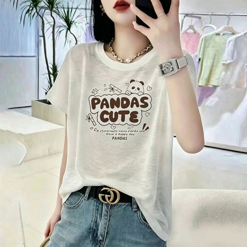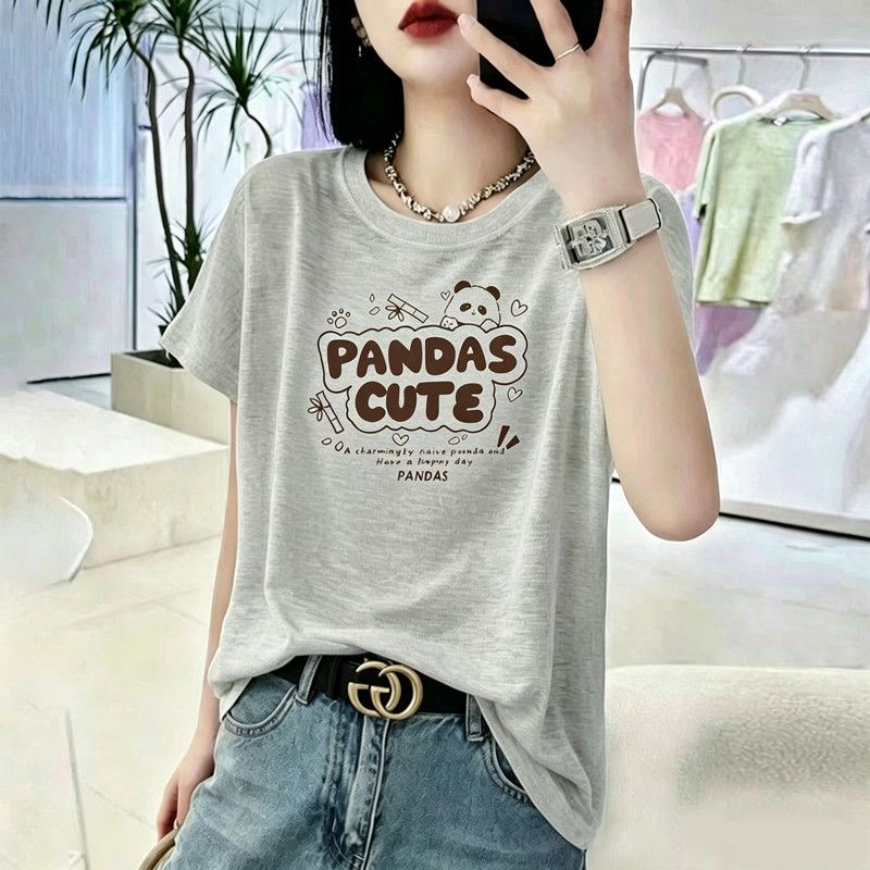 BY18124# 竹节棉夏季新款短袖印花大码宽松百搭休闲圆领上衣T恤 服裝批發女裝批發服飾貨源