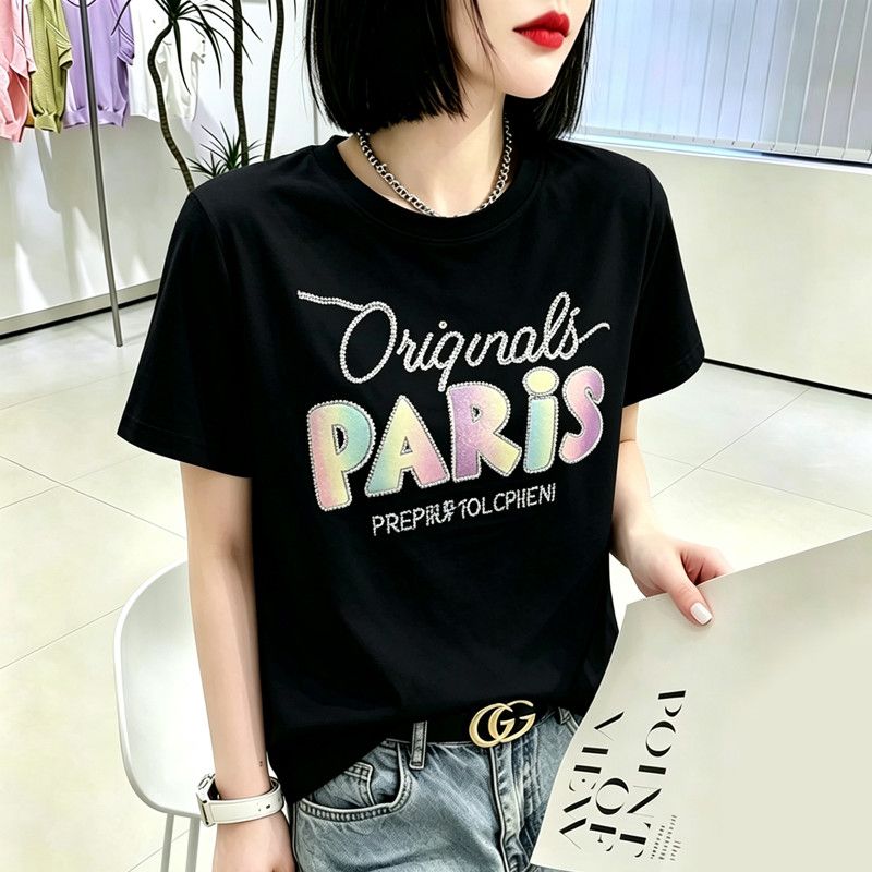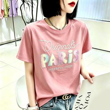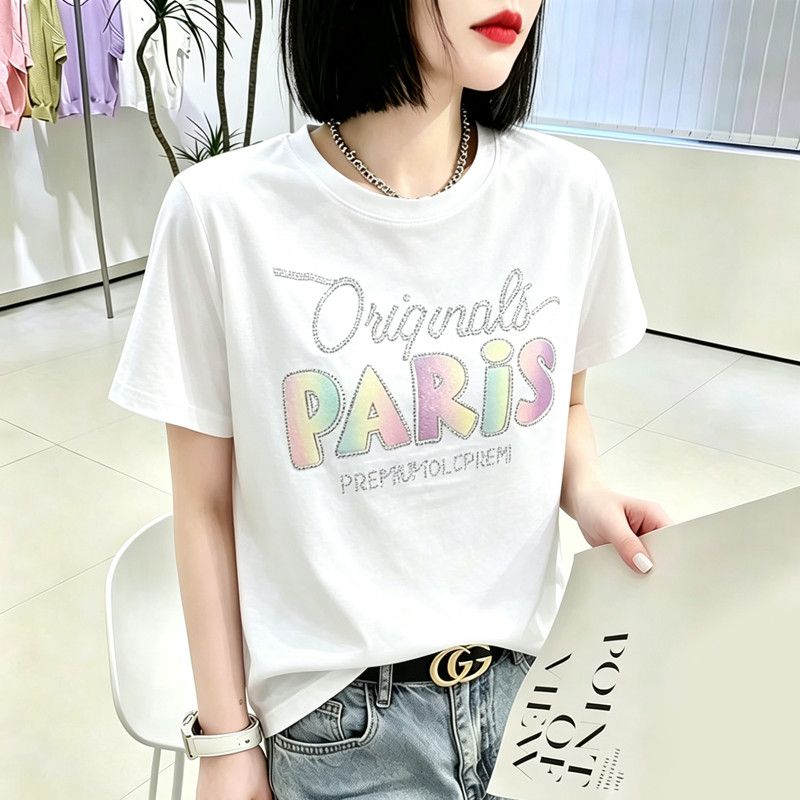 BY18125# 夏季新款棉短袖印花大码宽松百搭休闲圆领上衣T恤 服裝批發女裝批發服飾貨源