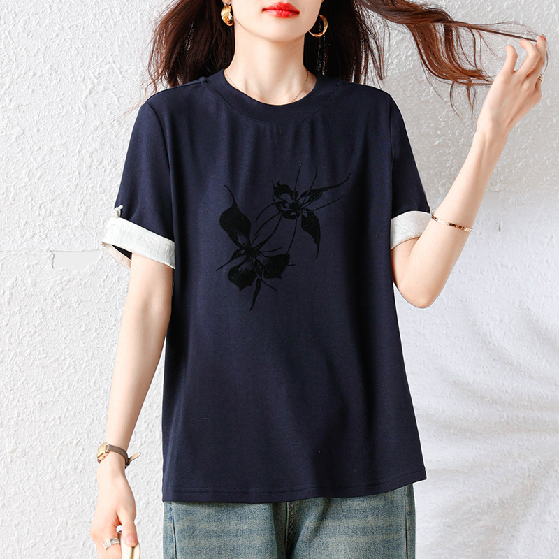 BY18147# 新中式夏季新款时尚蝴蝶印花大码T恤上衣女 服裝批發女裝批發服飾貨源