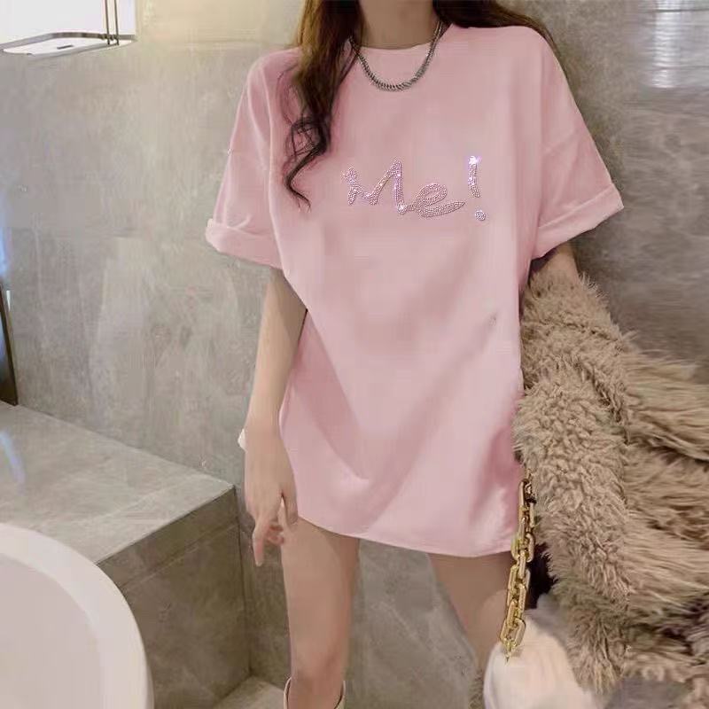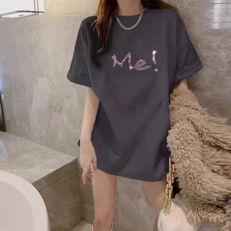 BY18191# 纯棉短袖t恤女夏装新款超火宽松时尚百搭中长款大码烫钻上衣ins潮 服裝批發女裝批發服飾貨源