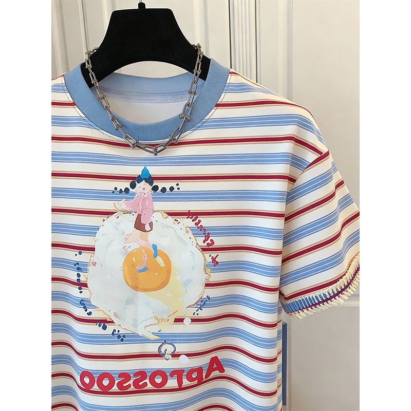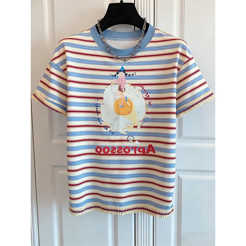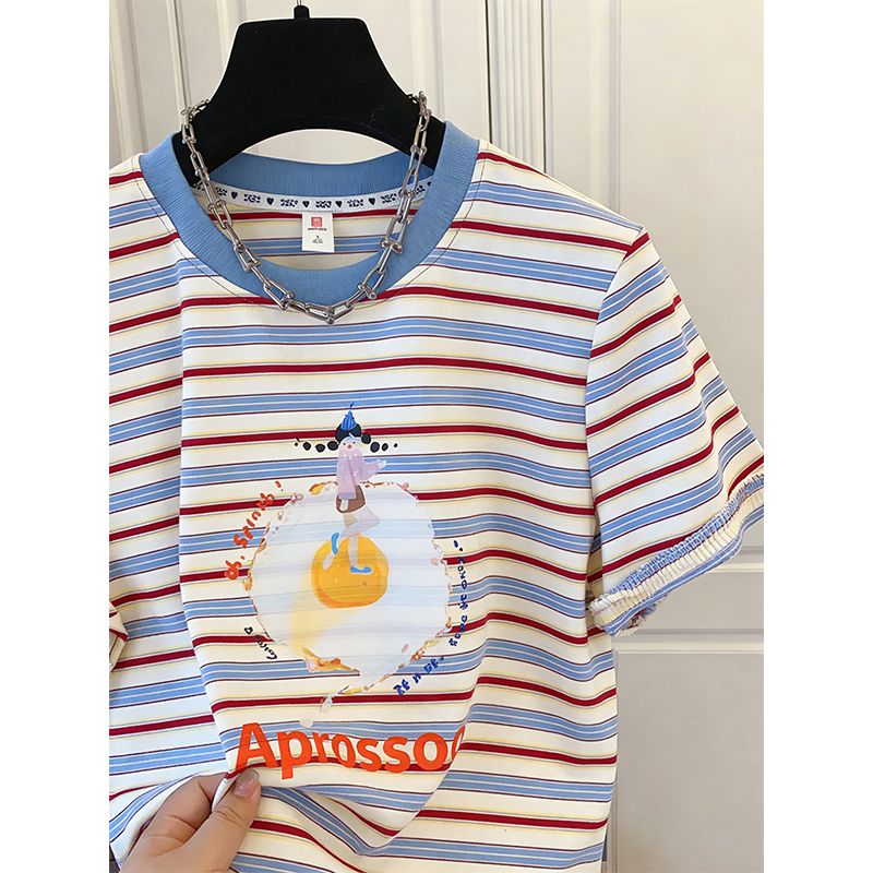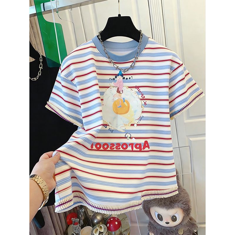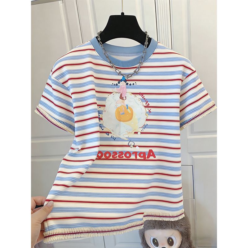 BY18307# 夏季色织条+领索罗纳袖子下摆工艺大码短袖T恤女 服裝批發女裝批發服飾貨源