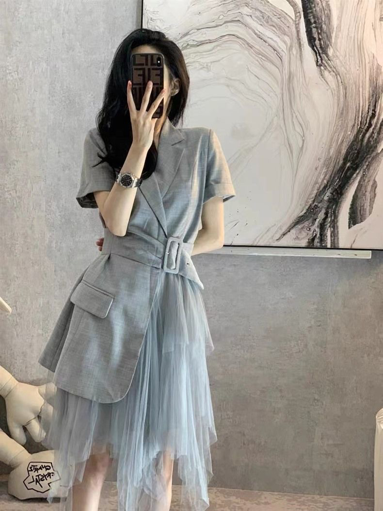 BY18401# 西装连衣裙女新款夏季女装高级设计感小众收腰显瘦气质裙子 服裝批發女裝批發服飾貨源