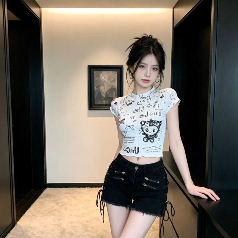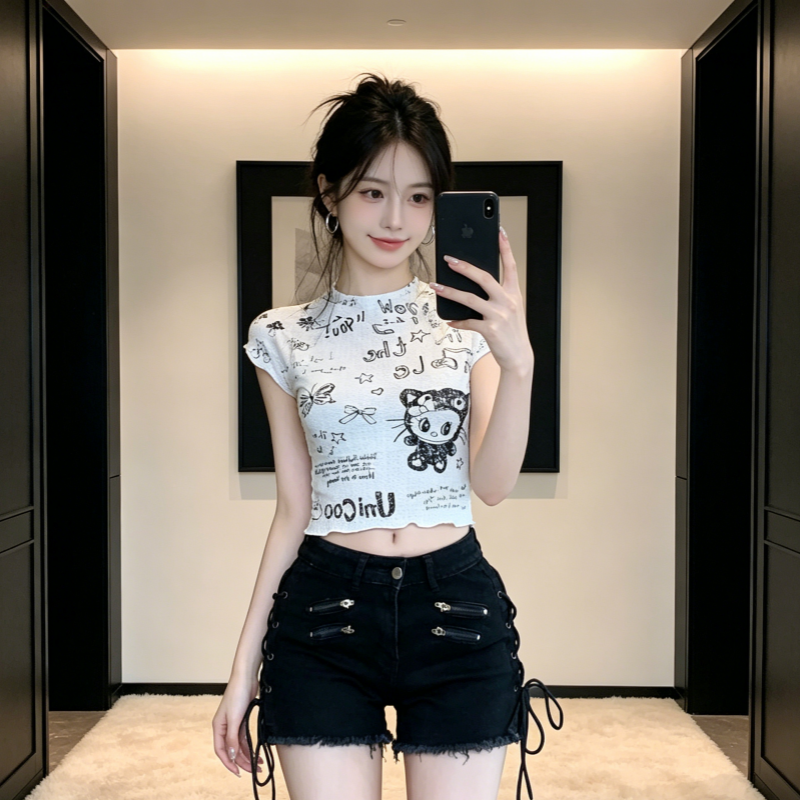 BY18455# 废土风水洗黑色牛仔短裤女夏季新款多巴胺绑带拉链毛边包臀短裤子 服裝批發女裝批發服飾貨源