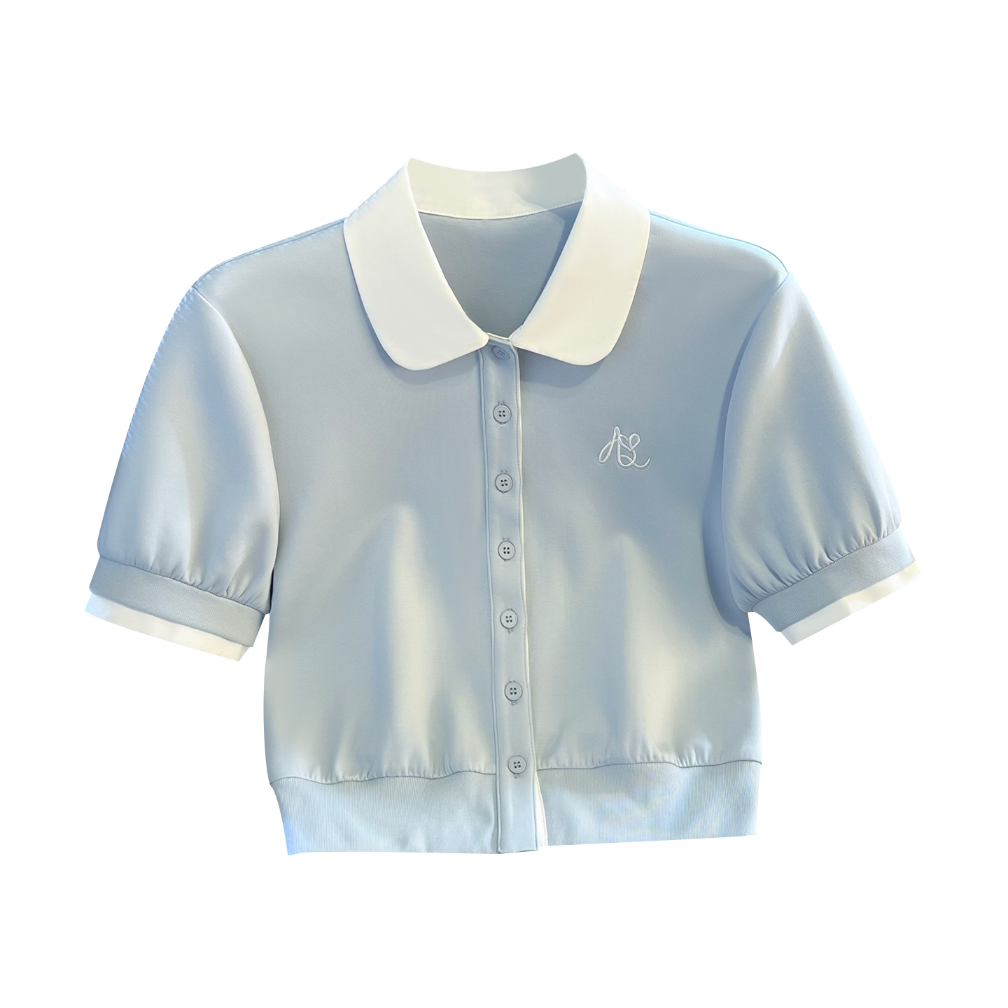 BY18483# 娃娃领撞色假两件上衣夏季新款百搭设计感女小众气质上衣 服裝批發女裝批發服飾貨源