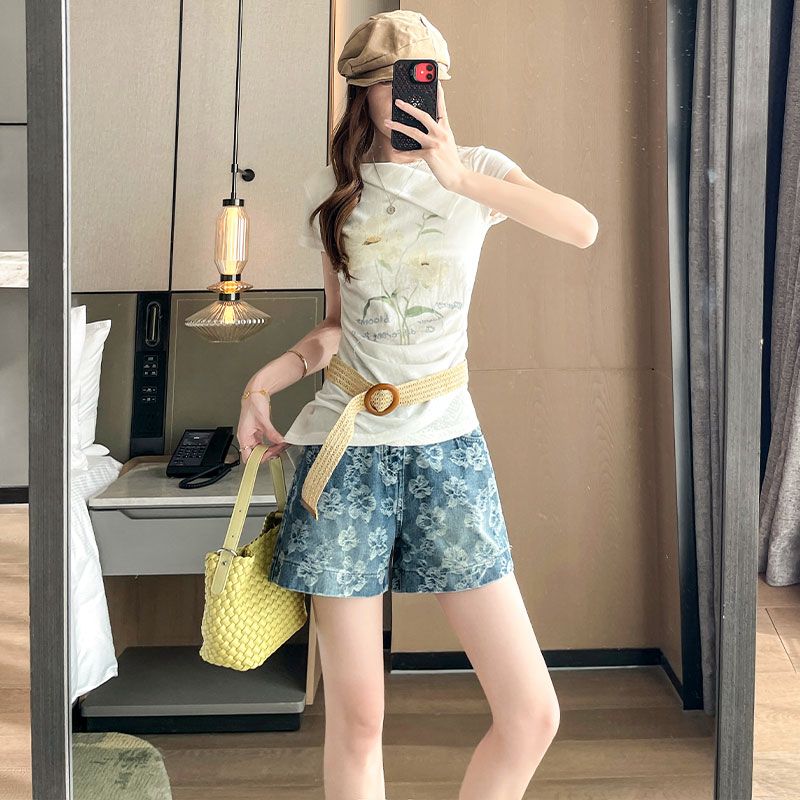 BY18539# 时髦提花牛仔短裤女夏季薄款新款宽松显瘦辣妹时尚潮流短裤子 服裝批發女裝批發服飾貨源