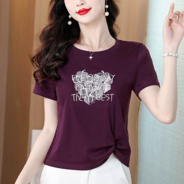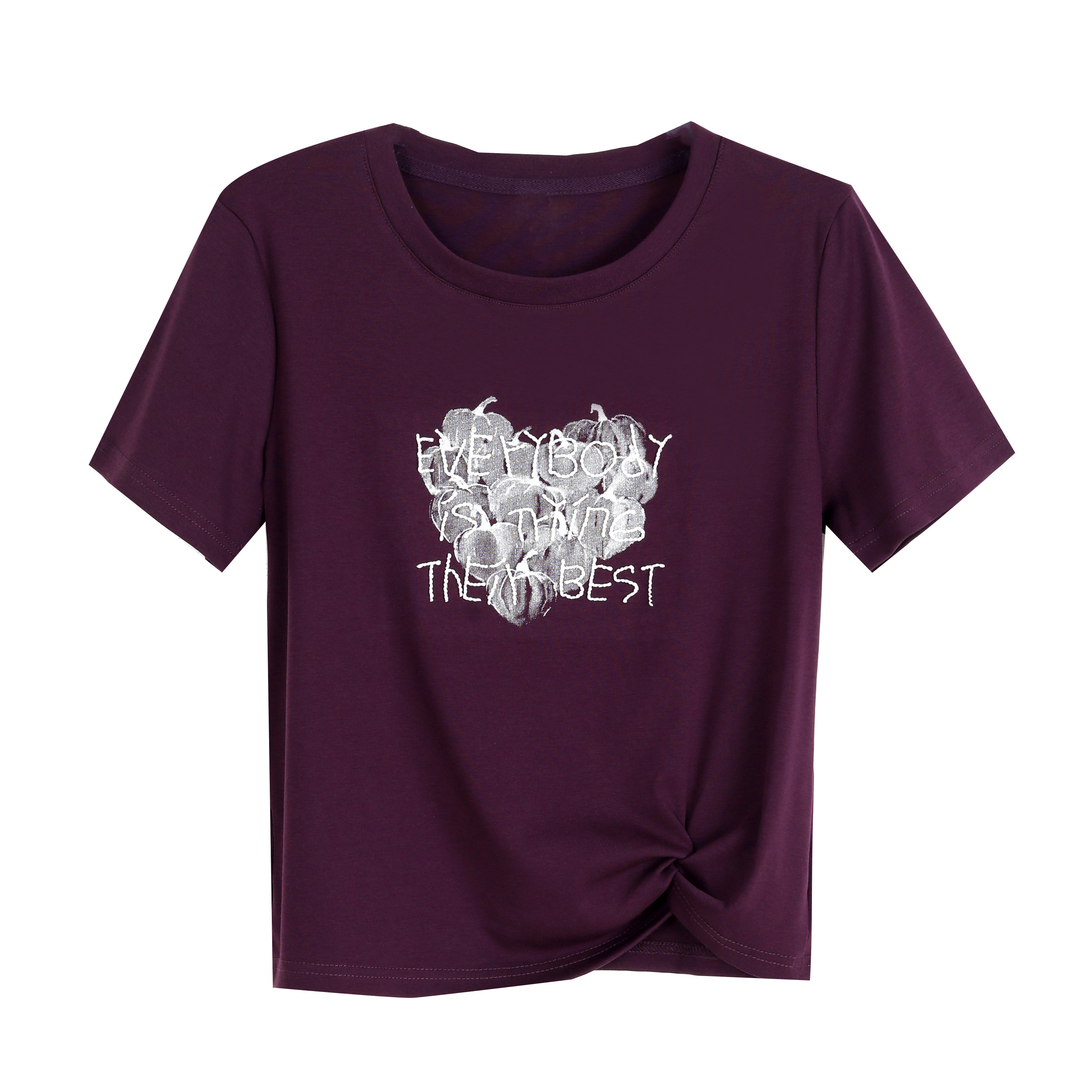 BY18725# 夏上新圆领爱心印花刺绣短袖T恤女侧边打结遮肉显瘦气质上衣 服裝批發女裝批發服飾貨源