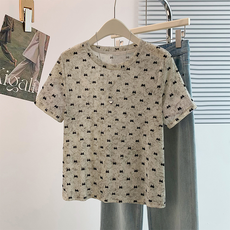 BY18738# 蝴蝶植绒短袖T恤夏季新款韩版时尚圆领气质百搭晕染薄款上衣 服裝批發女裝批發服飾貨源