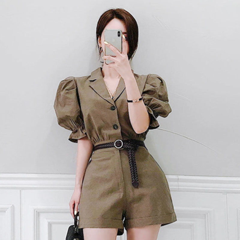 BY18786# 夏季新款西装领泡泡袖连体短裤女韩版气质高腰显瘦阔腿连衣裤 服裝批發女裝批發服飾貨源
