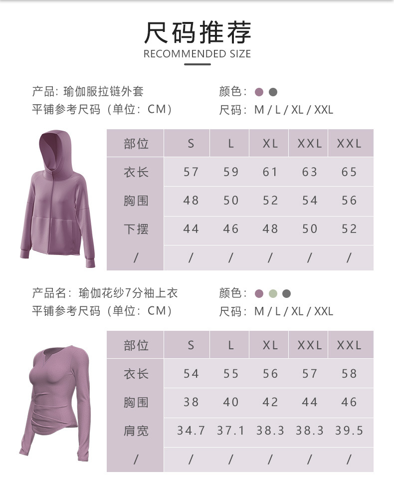 - 颜色:(三件套)紫色文胸+浆果紫上衣+紫色长裤,(三件套)紫色文胸+浆果紫上衣+灰色长裤,(三件套)紫色文胸+浆果紫上衣+黑色长裤,(三件套)黑色文胸+豆蔻绿上衣+黑色长裤,(三件套)黑色文胸+星耀黑上衣+黑色长裤,(三件套)黑色文胸+星耀黑上衣+灰色长裤