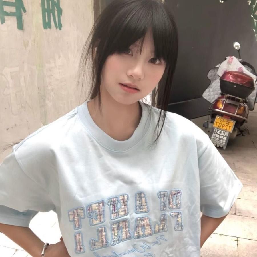 FA26088# 小香风刺绣二本针纯棉精梳紧密短袖t恤女 服裝批發女裝批發服飾貨源