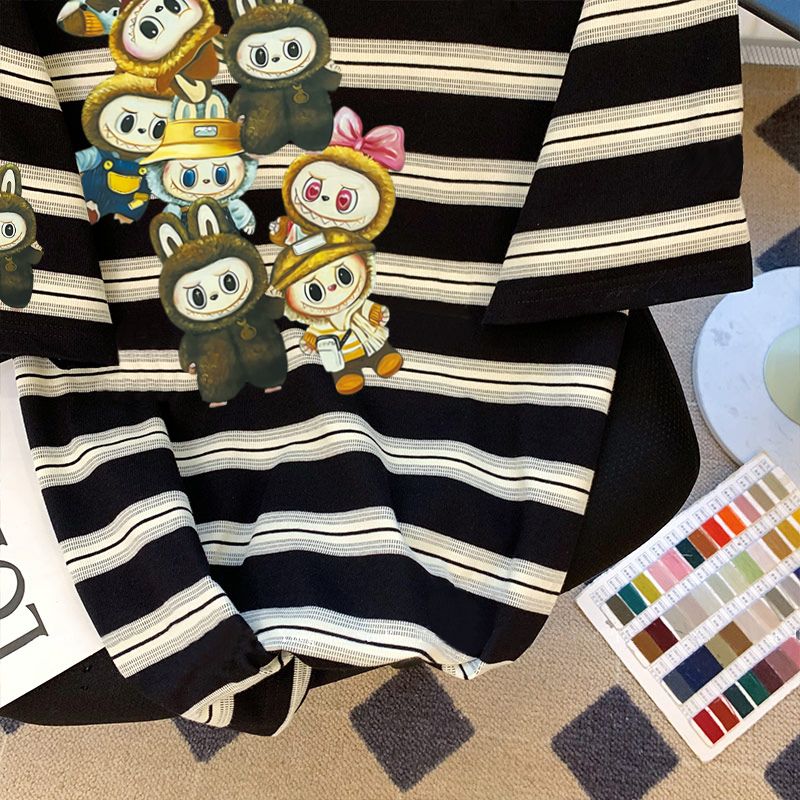 FA29601# 螺纹提花涤特大码300斤黑色条纹短袖t恤宽松情侣印花体恤