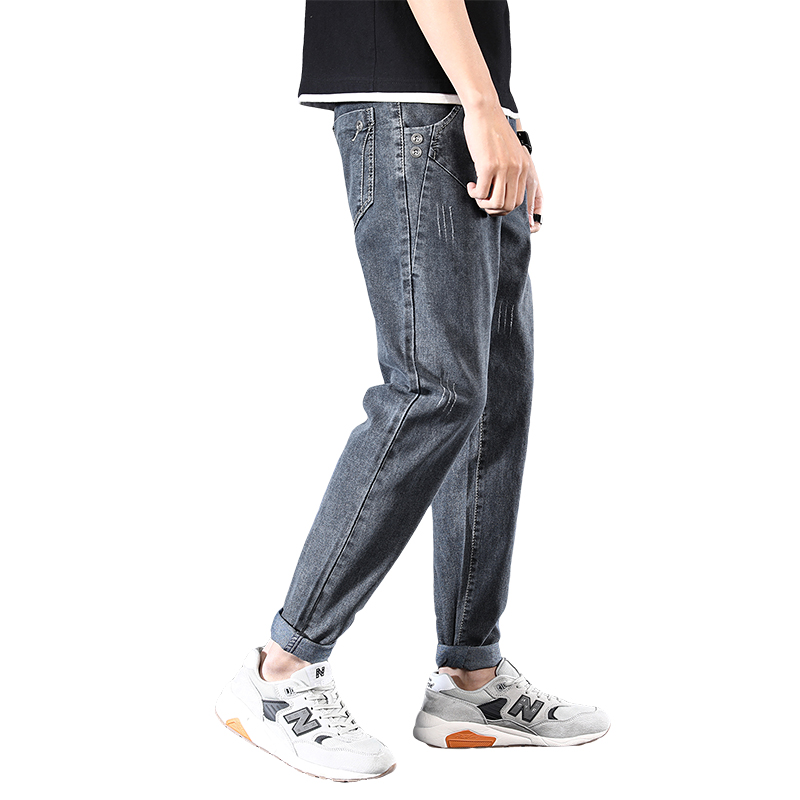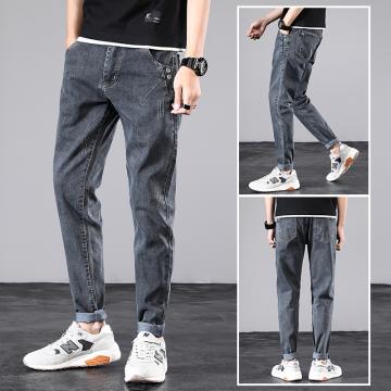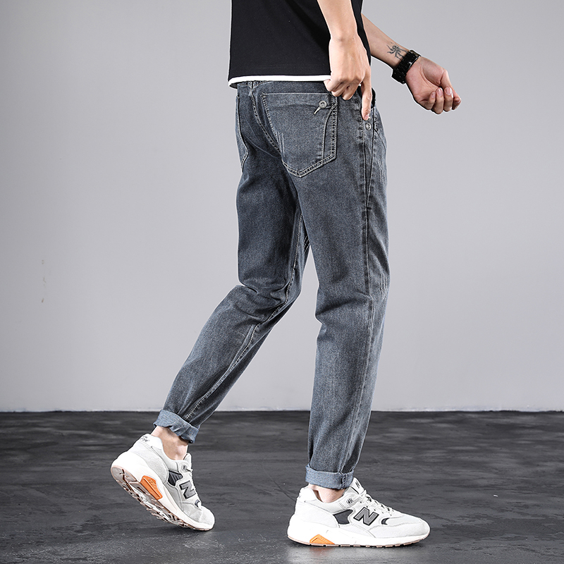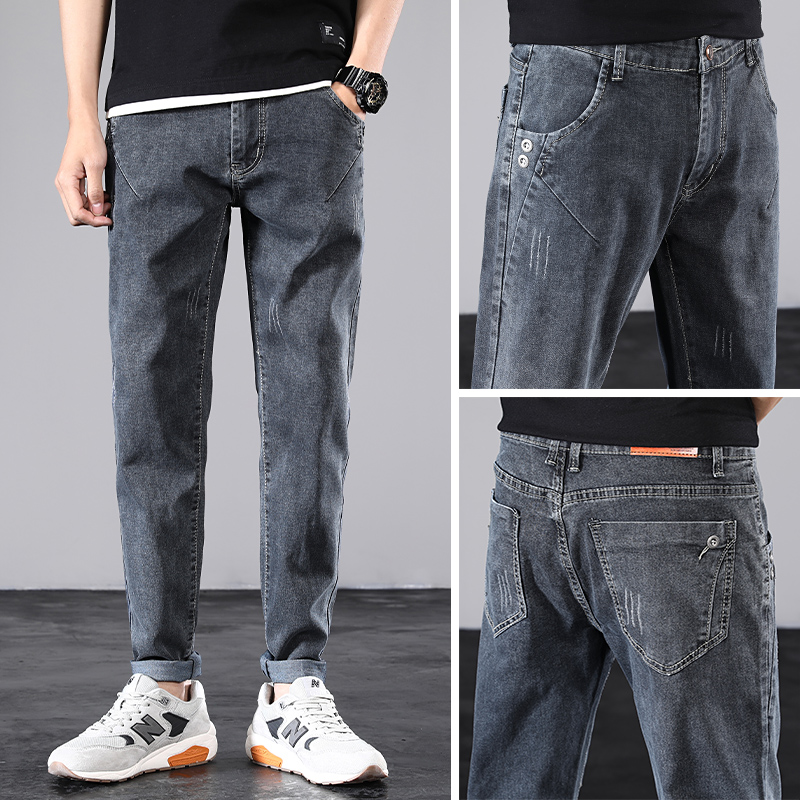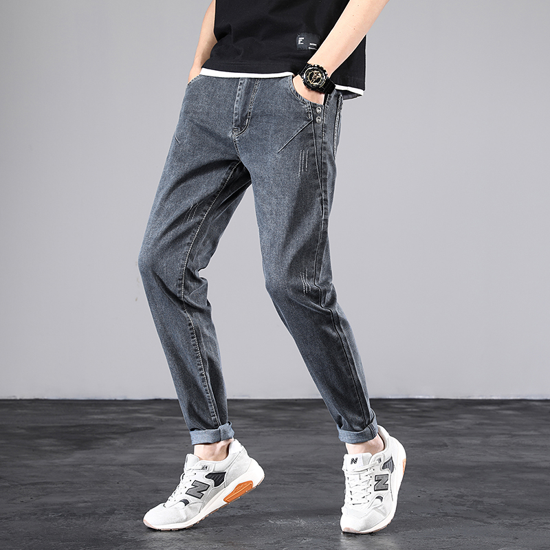 FA42386# 牛仔裤男士夏季新款潮流弹力九分裤灰色修身小脚长裤子青年 男装批发