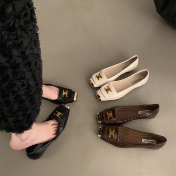X-32798# 韩版设计感单鞋小皮鞋黑色气质平底鞋子春秋法式瓢鞋软底女鞋新款 鞋子批发女鞋批发