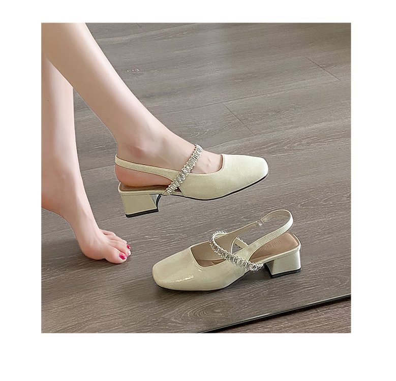 X-32822# 平底低跟包头凉鞋女春夏新款法式时尚水钻一字带浅口方头单鞋 鞋子批发女鞋批发
