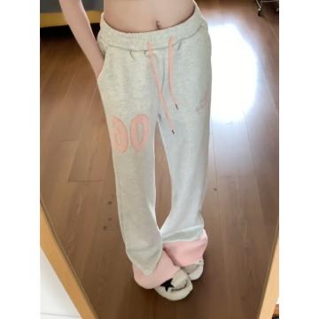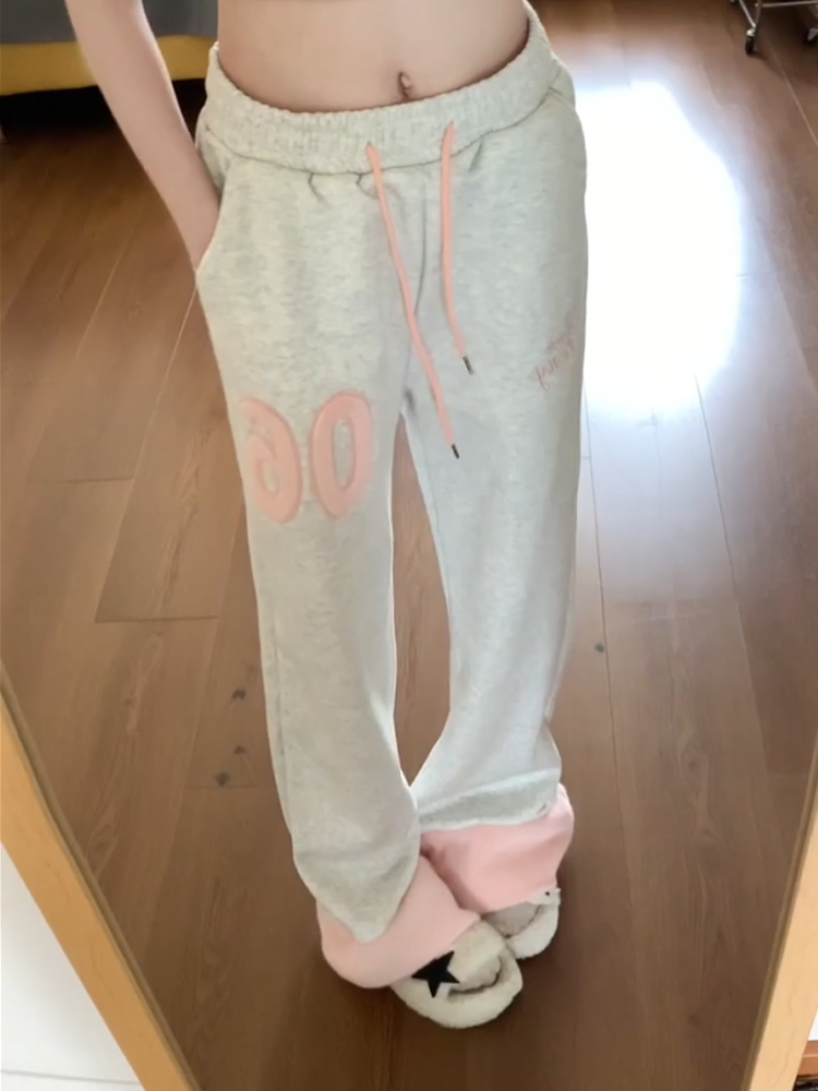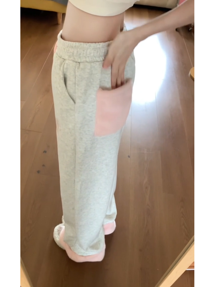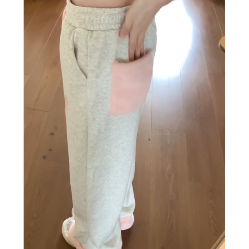 FA42503# 花灰色高腰休闲裤女秋冬宽松阔腿学院风休闲长裤 服裝批發女裝批發服飾貨源
