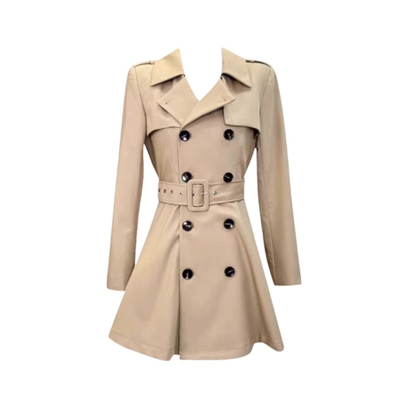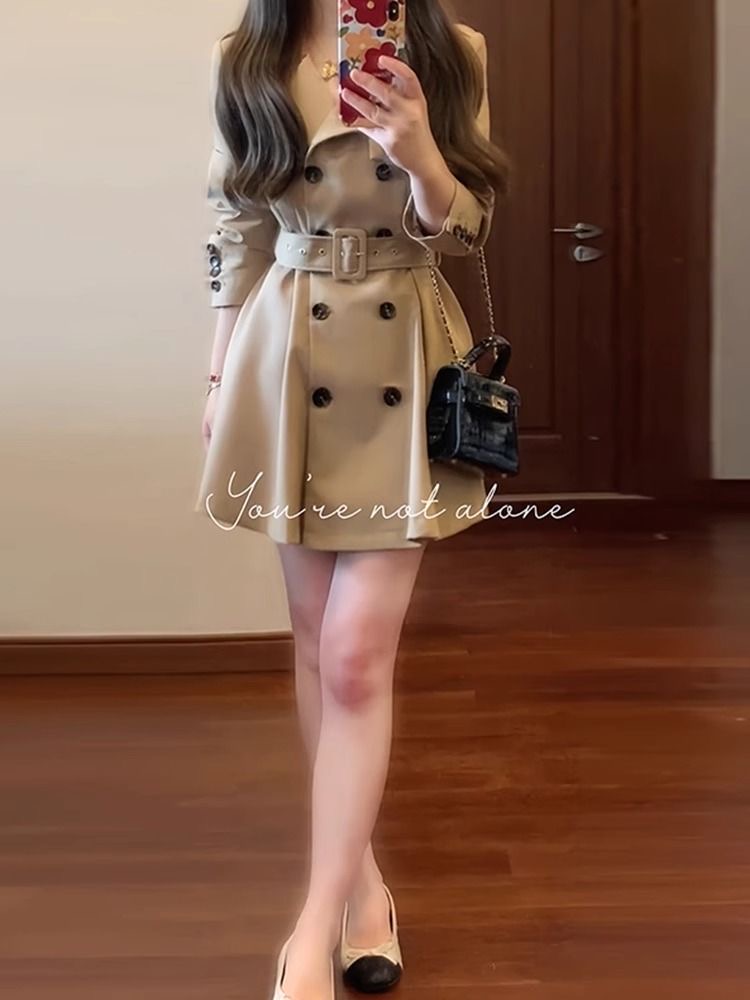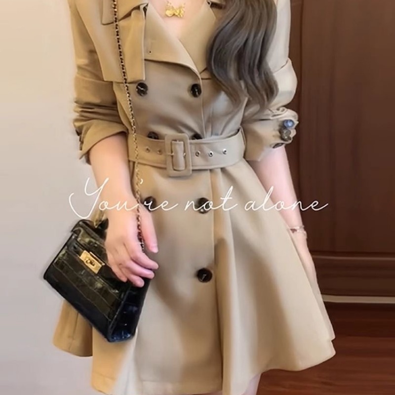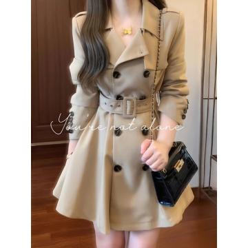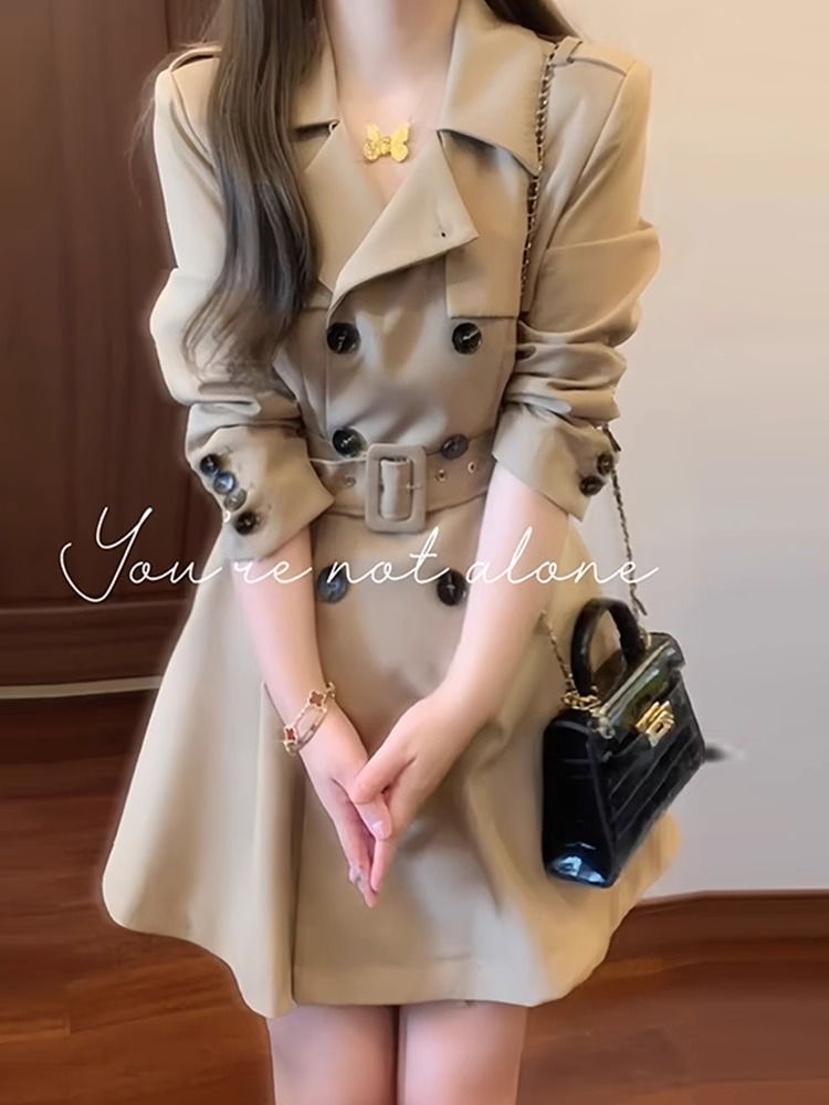 FA42546# 卡其色风衣外套女春秋季小个子收腰翻领西装外套韩版休闲气质大衣 服裝批發女裝批發服飾貨源