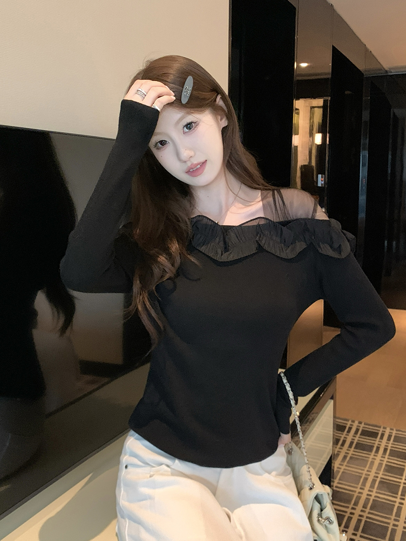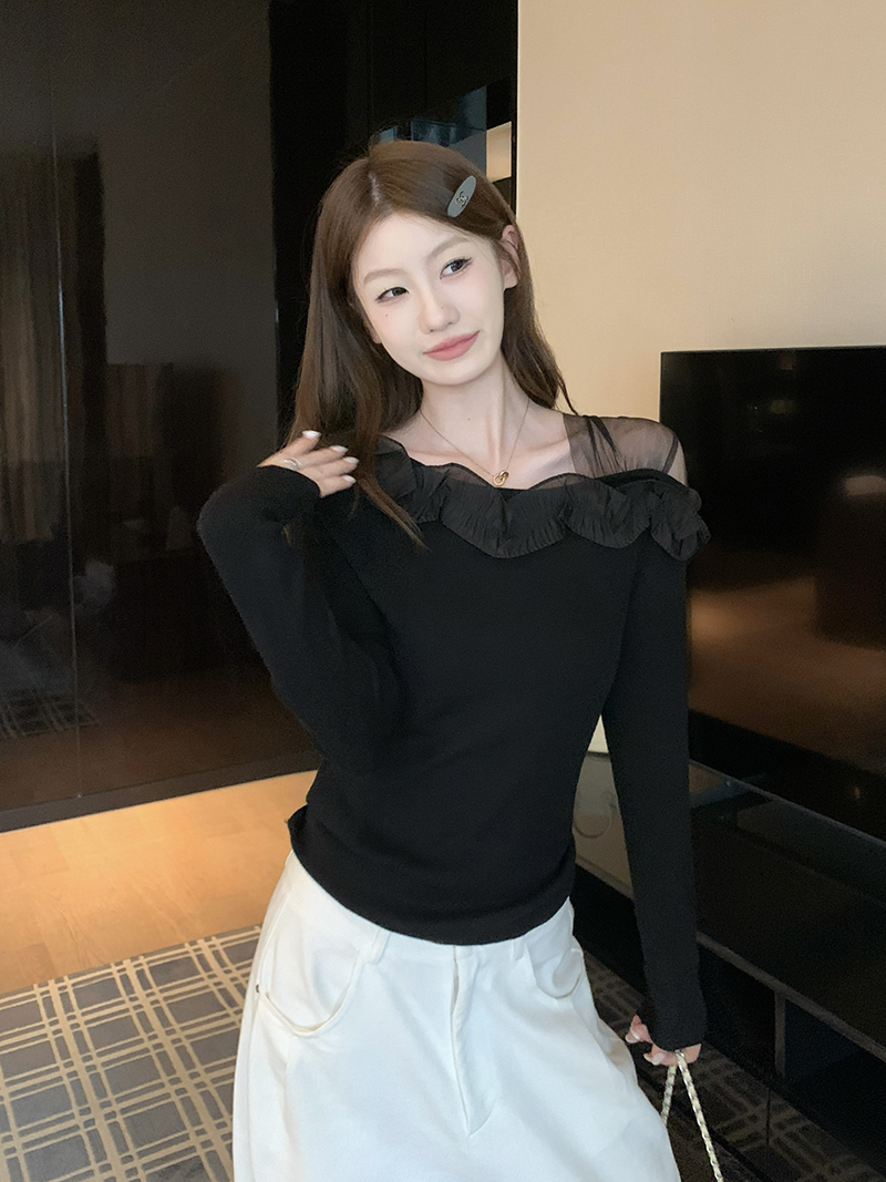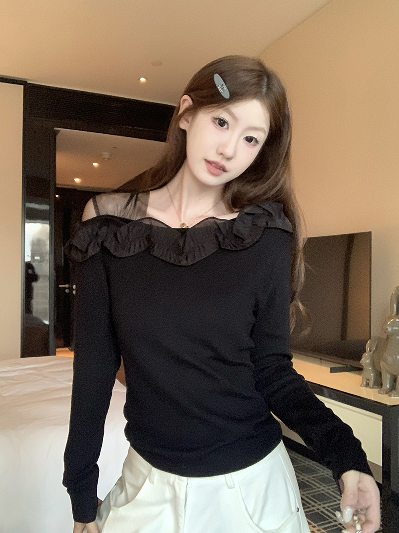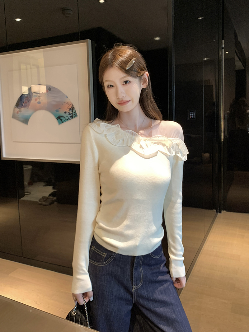 FA42551# 新款法式复古蕾丝花朵拼接针织上衣 服裝批發女裝批發服飾貨源