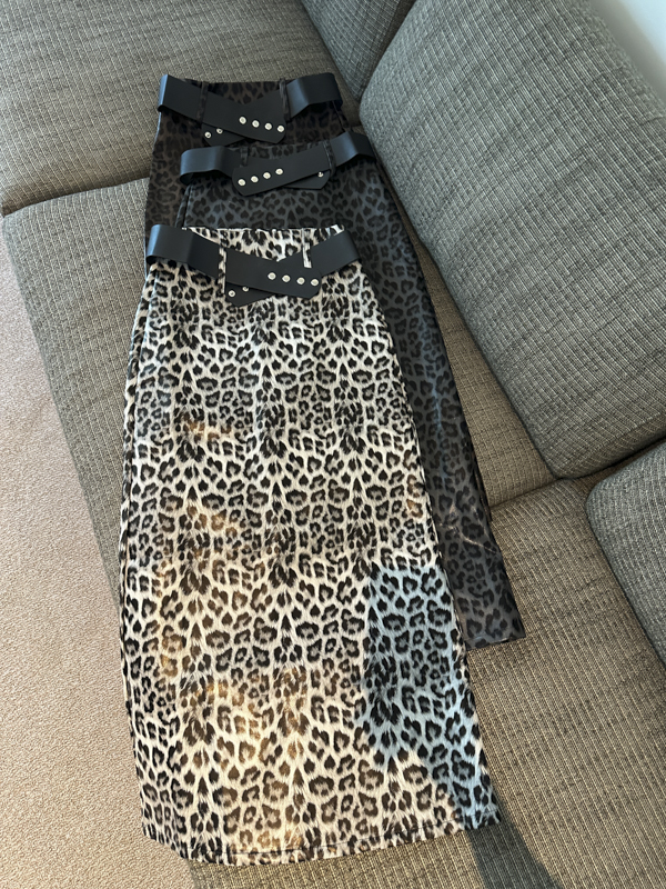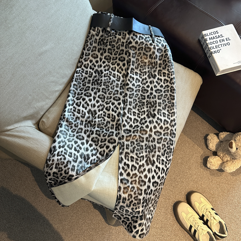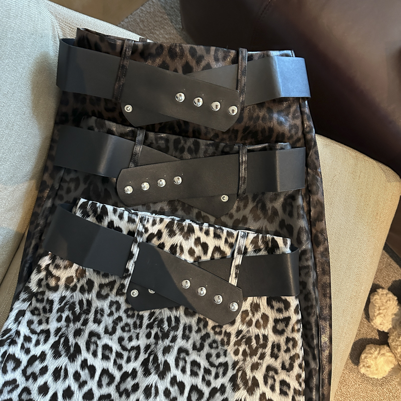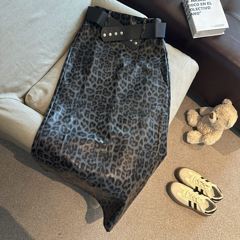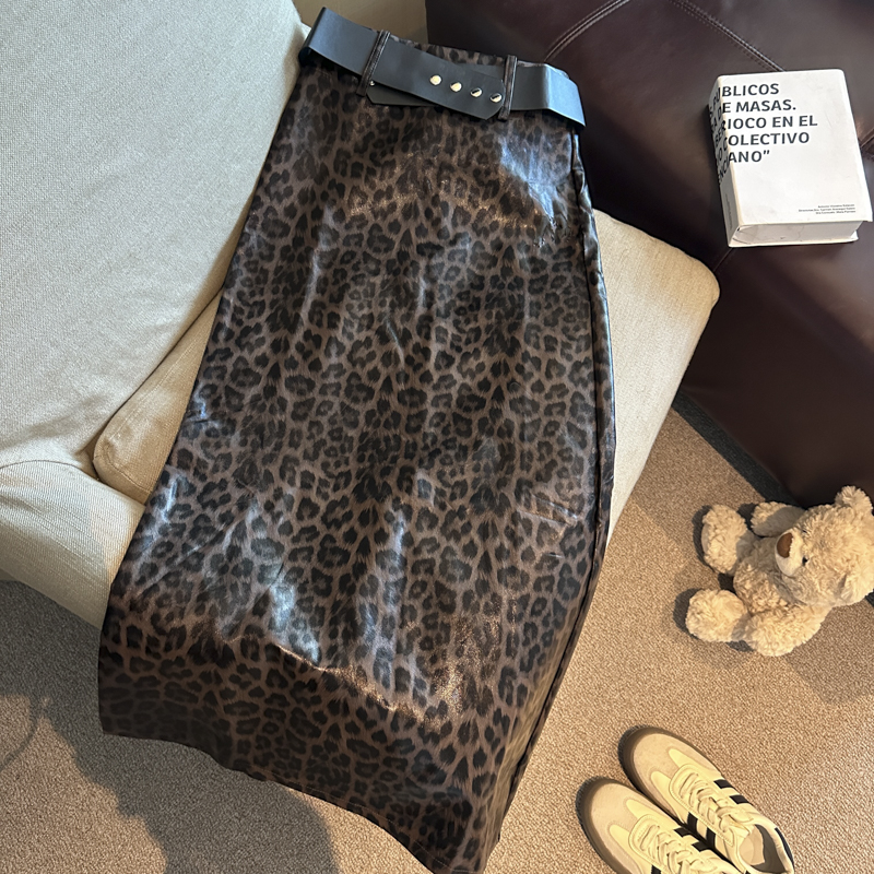 FA42559# 秋新款美式时髦辣妹风高腰遮跨豹纹A字中长款pu直筒裙女 服裝批發女裝批發服飾貨源