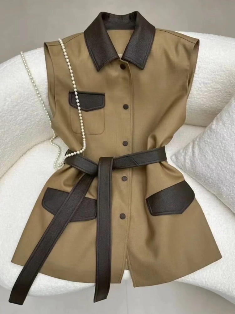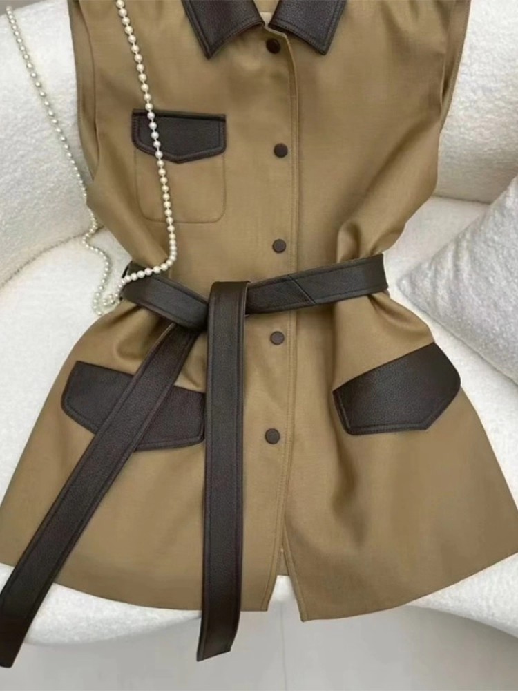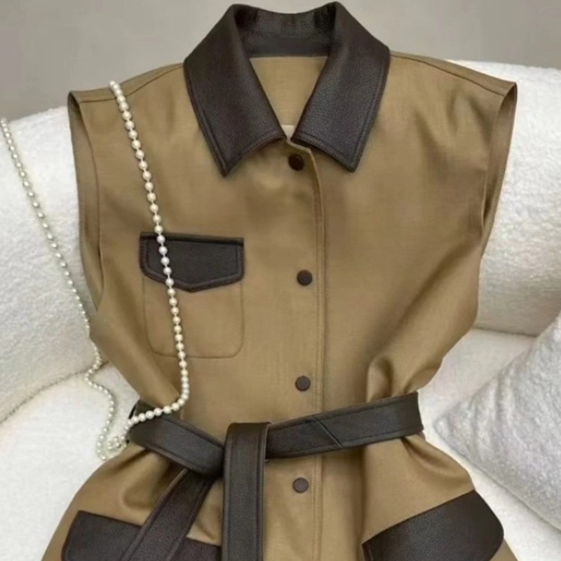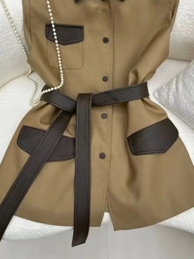 FA42575# 新款秋季气质高级感背心时髦洋气设计感独特超好看卡其色马甲 服裝批發女裝批發服飾貨源