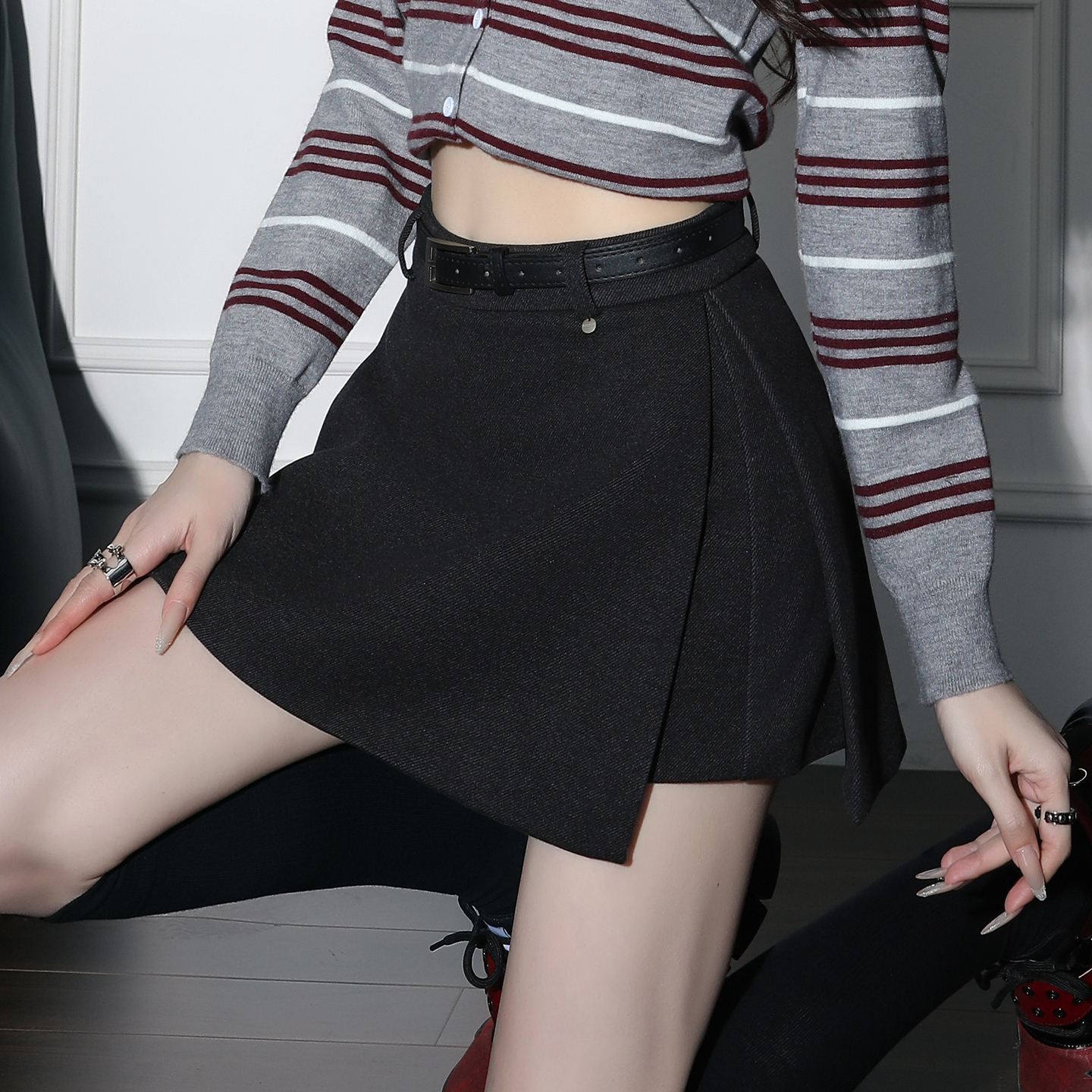 FA42691# 高级灰色侧开叉半身裙女秋冬新款高腰毛呢短裙防走光裙裤 服裝批發女裝批發服飾貨源
