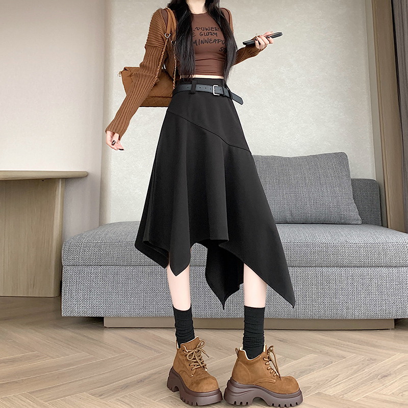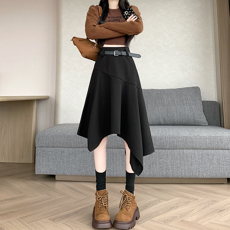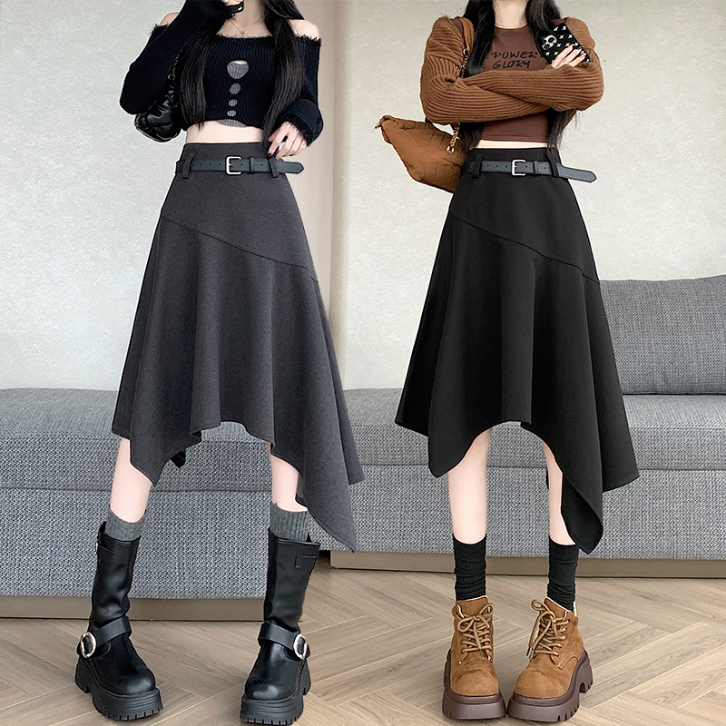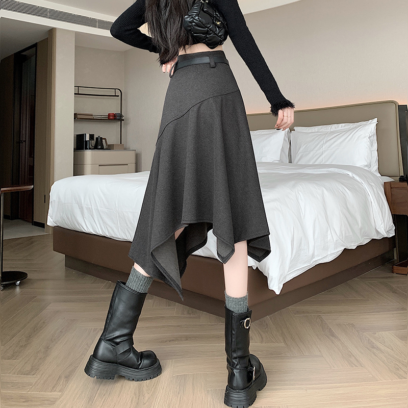 FA42710# 不规则高腰毛呢半身裙女冬季新款高级感中长款a字裙子ins 服裝批發女裝批發服飾貨源