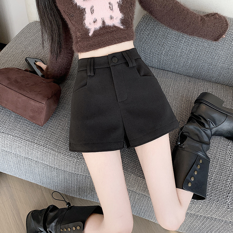 FA42712# 辣妹高腰呢子短裤百搭休闲裤女冬季显瘦a字包臀裤子黑色热裤 服裝批發女裝批發服飾貨源