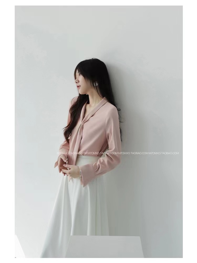 FA42792# 设计感长袖衬衫女春秋飘带领高级感上衣气质通勤白色衬衣 服裝批發女裝批發服飾貨源