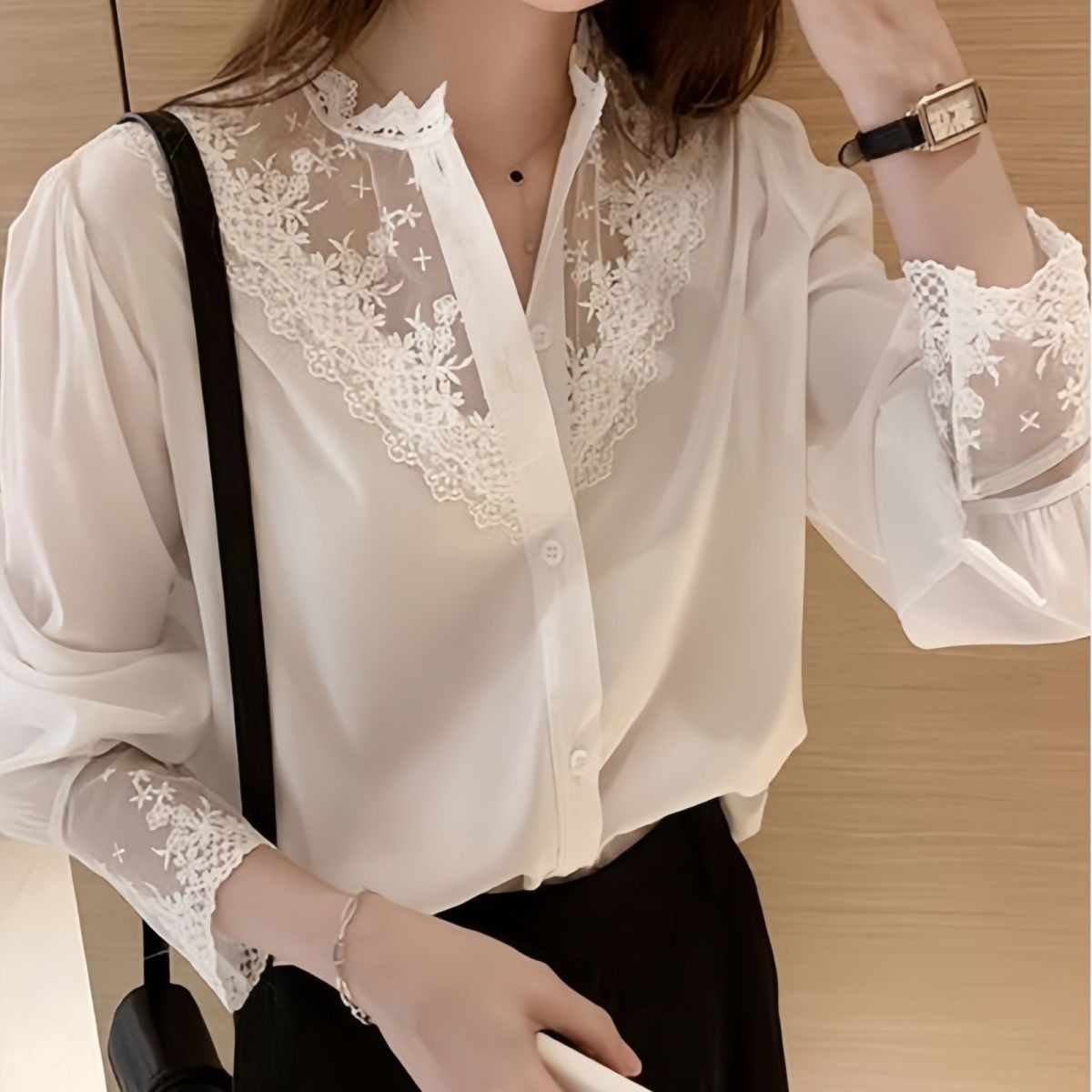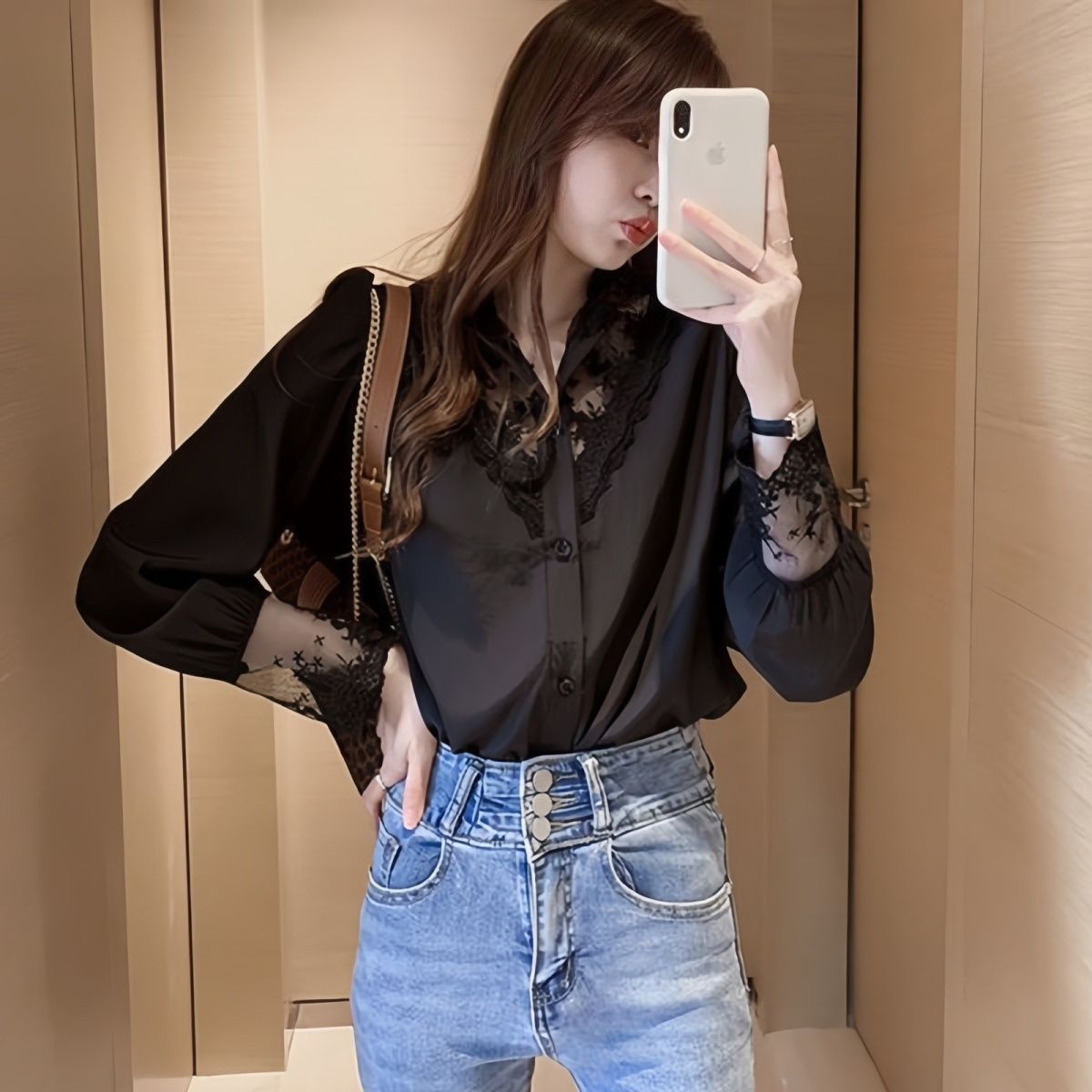 FA43821# 蕾丝打底衫女春秋新款设计感小众内搭洋气心机上衣雪纺拼接衬衫 服裝批發女裝批發服飾貨源