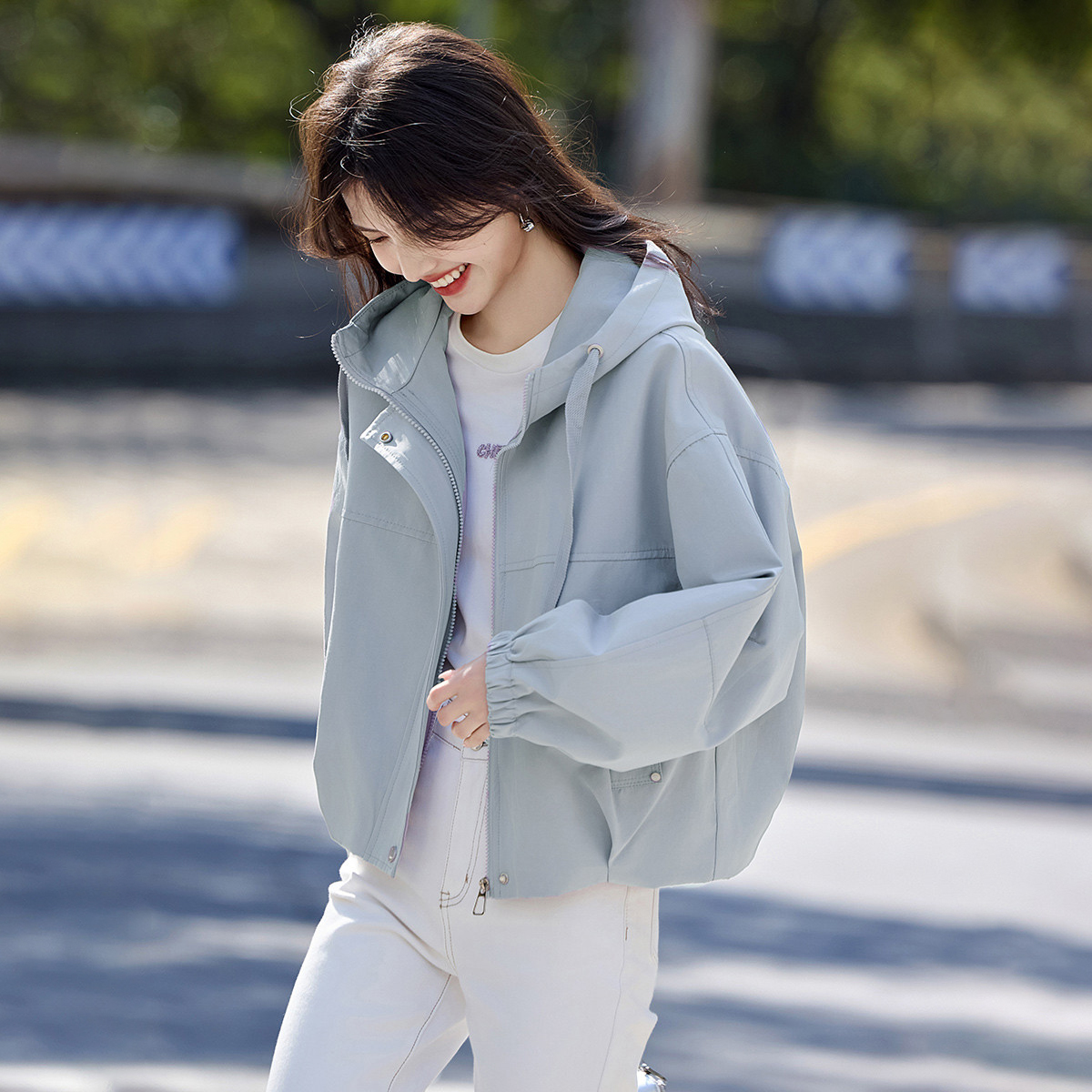 FA44798# 短款连帽风衣外套女新款春装小个子宽松休闲夹克上衣 服裝批發女裝批發服飾貨源