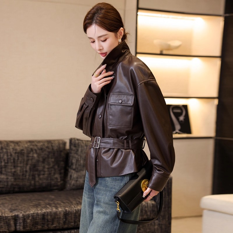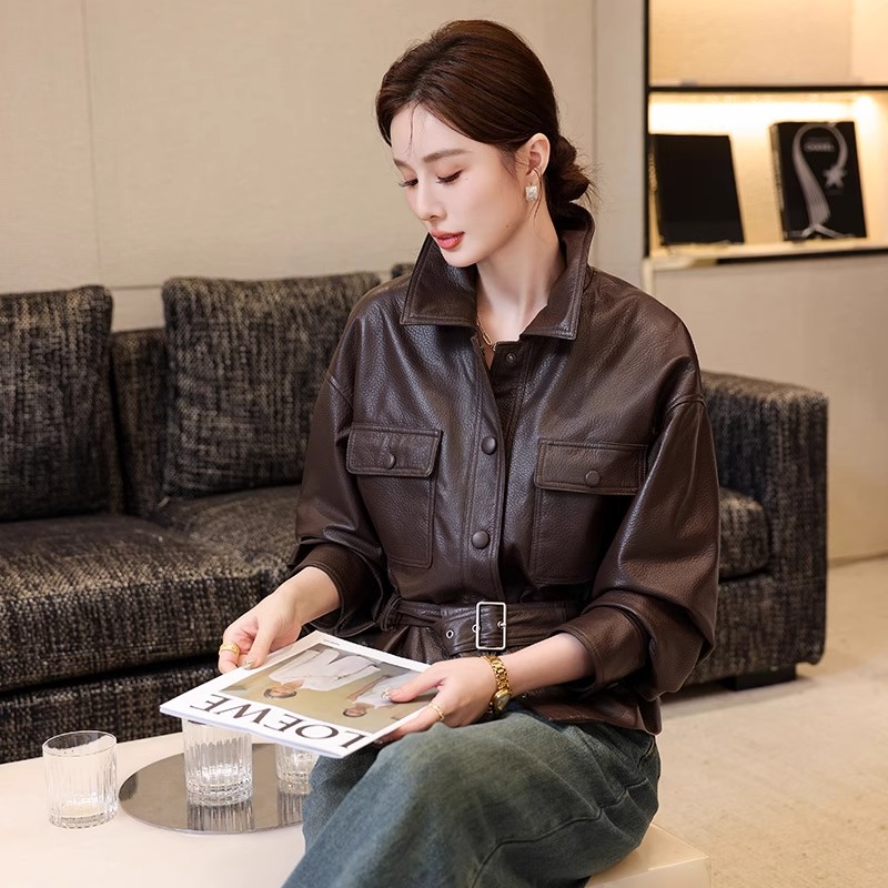 FA45024# 爆款宋佳同款衬衫皮衣外套秋冬新款收腰修身时尚气质减龄上衣 服裝批發女裝批發服飾貨源