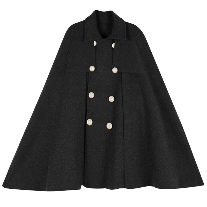 FA45218# 赫本呢子中长款披风斗篷外套女秋冬装新款大码宽松小个子毛呢大衣 服裝批發女裝批發服飾貨源