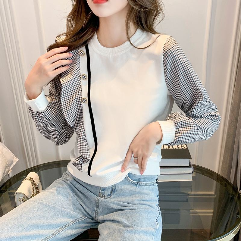 FA45266# 设计感小众灯笼袖超火格子卫衣女新款秋装圆领潮ins上衣薄款 服裝批發女裝批發服飾貨源