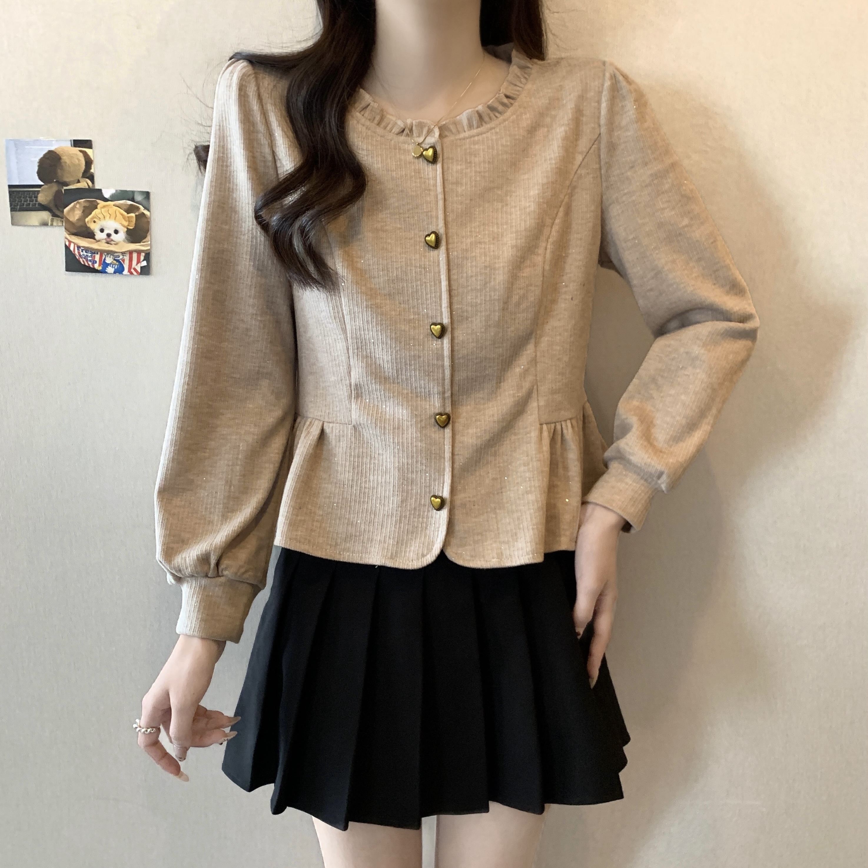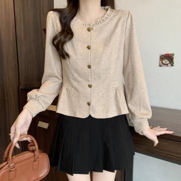 FA45317# 大码秋冬新款时尚减龄修身显瘦洋气圆领长袖开衫女上衣 服裝批發女裝批發服飾貨源