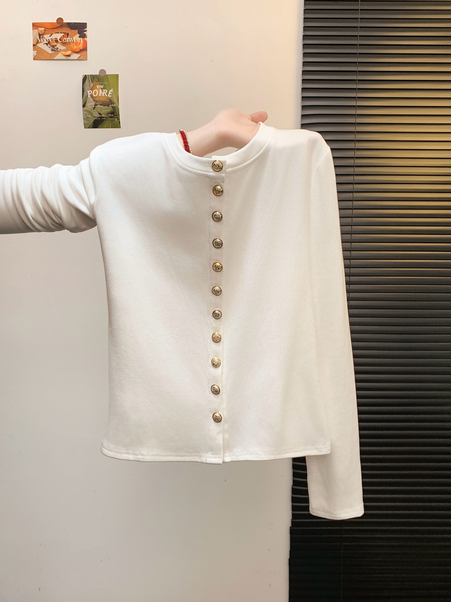 FA45331# 金属扣廓形外套/高级感长袖抓毛女显瘦T恤开衫秋 服裝批發女裝批發服飾貨源