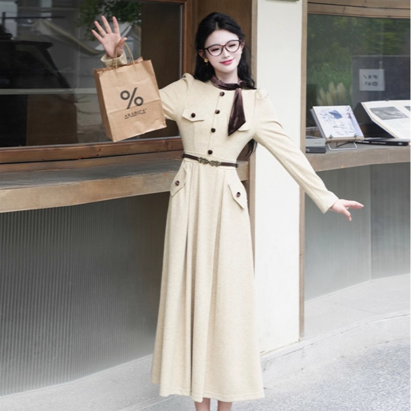 FA45544# 大码女装法式小香风长裙女秋季高级感收腰显瘦气质连衣裙潮 服裝批發女裝批發服飾貨源