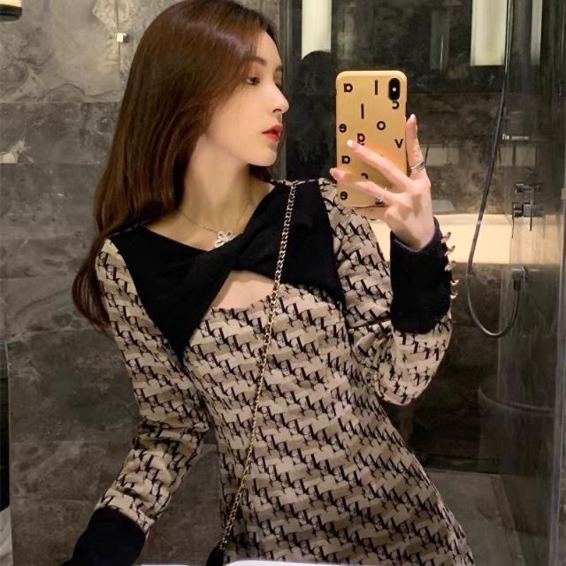 FA45563# 小香风法式复古针织连衣裙秋冬女装名媛中长款打底毛衣裙子 服裝批發女裝批發服飾貨源