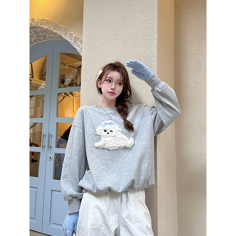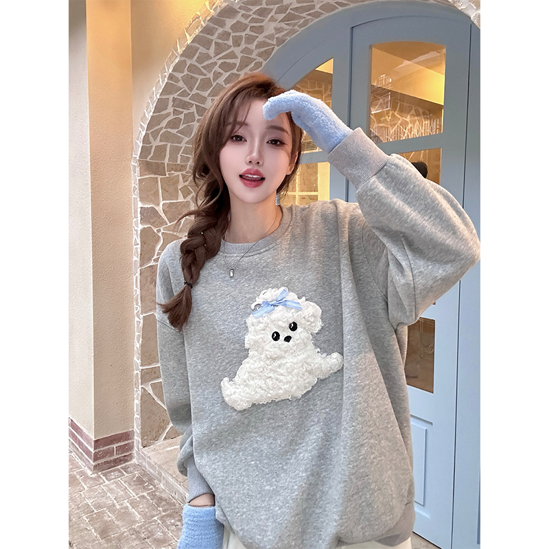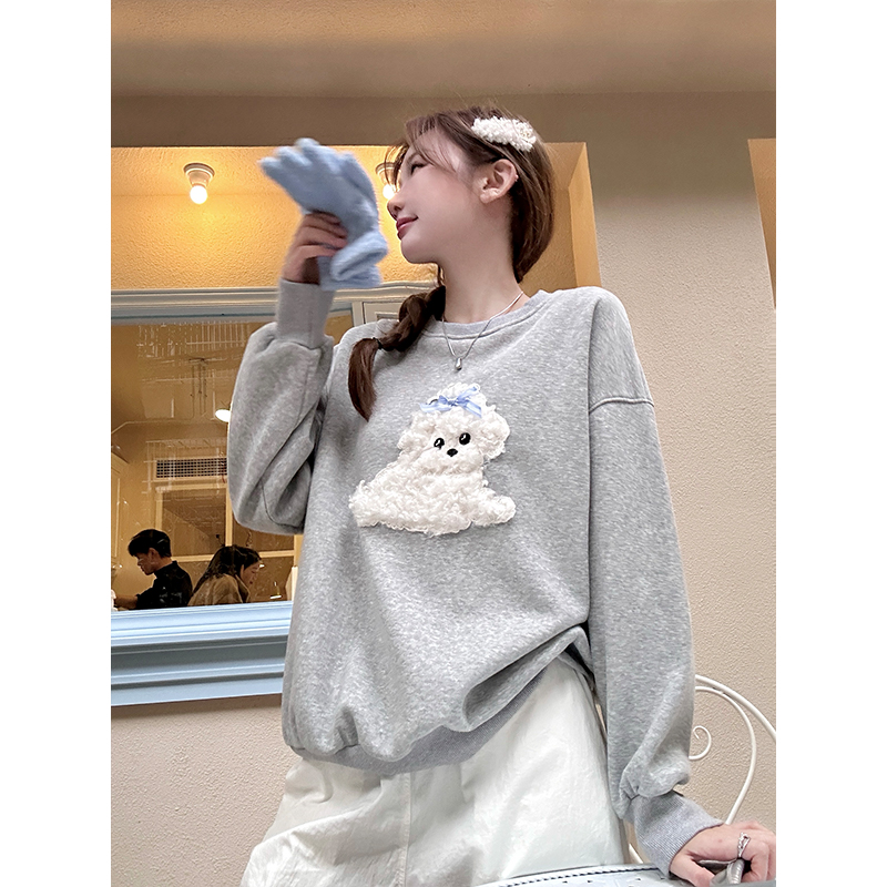 FA45600# 纯棉华棉春款元气减龄小狗加绒卫衣女秋冬韩系百搭上衣 服裝批發女裝批發服飾貨源