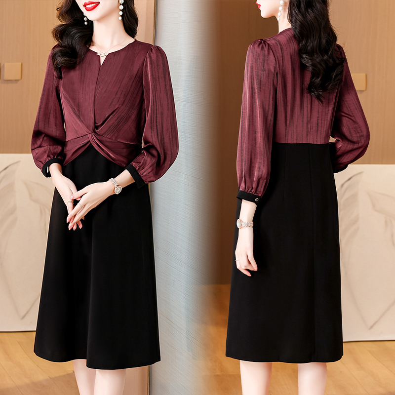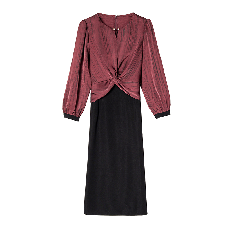 FA45647# 法式复古假两件连衣裙女早秋新款阔太太高贵洋气褶皱修身显瘦裙子 服裝批發女裝批發服飾貨源