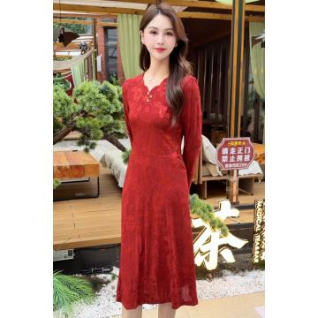 FA45650# 秋冬长袖连衣裙裙新款中长款过膝大摆收腰 服裝批發女裝批發服飾貨源